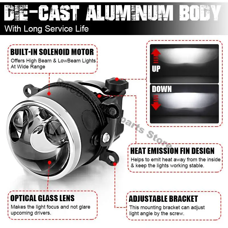 Durable - The fog light is with high clear convex lens and aluminum body ensure it will have much higher longevity than other fog lights. The reflector use high quality aluminum, strong heat dissipation, more perfect and strong looking.