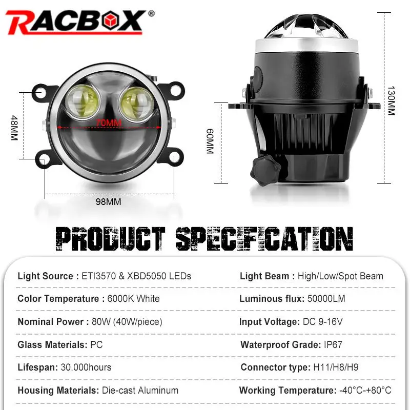 This led fog lamp is used to illuminate road and safety warning when driving in rainy and foggy weather. It improves the visibility of drivers and surrounding traffic participants.