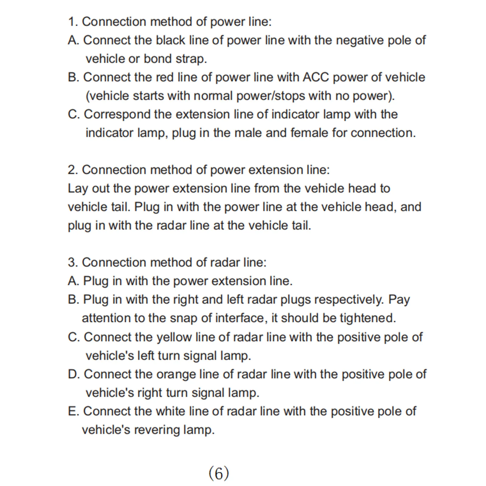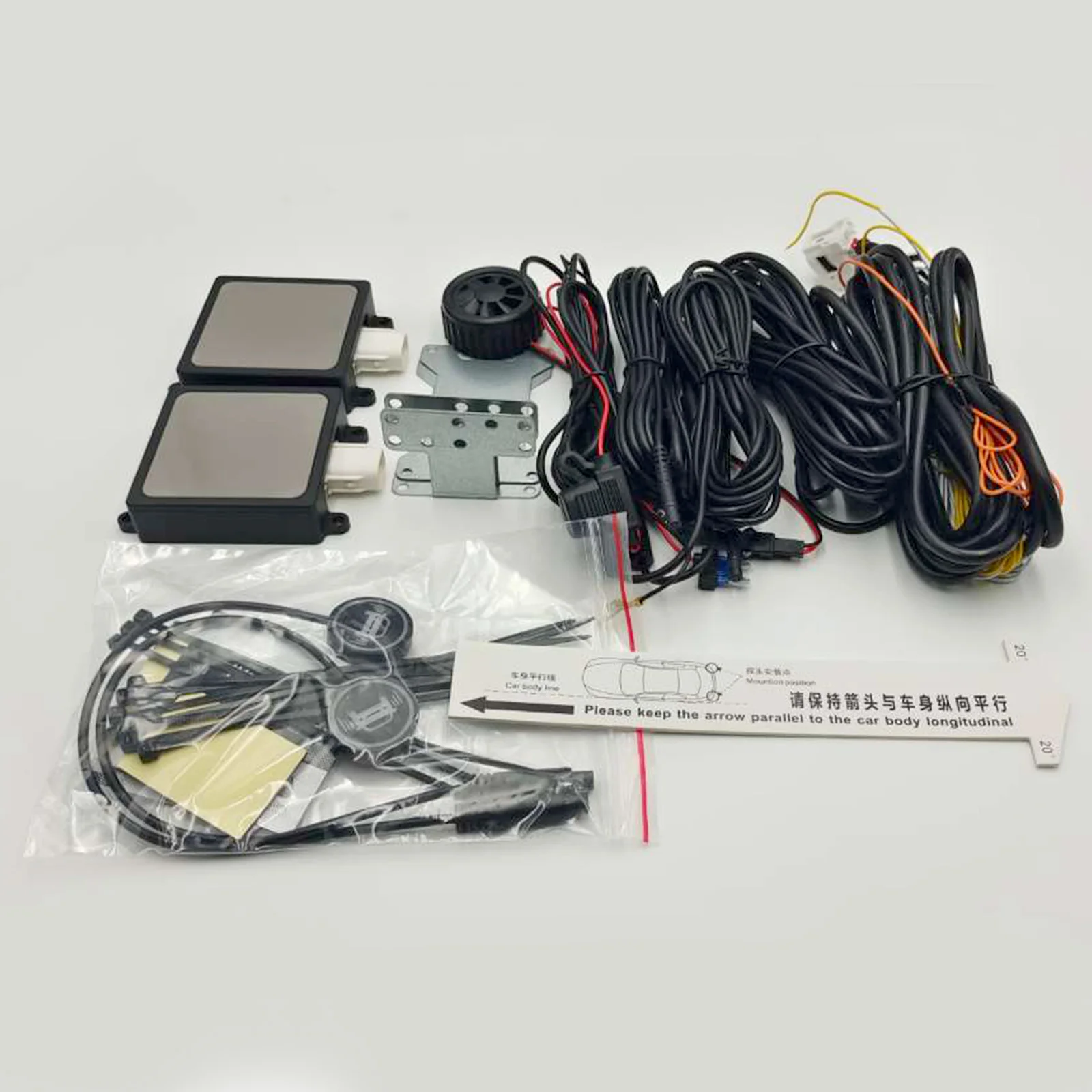What You Get: 77-81Ghz millimeter wave radar*2, In-vehicle warning light*2, Power cord with buzzer*1, Power extension cord*1 (5 meters), Indicator light extension cord*2, Radar line*1 (short line left , long line right), Mounting bracket*2, Cable ties*some, Spare double-sided tape*2, Self-tapping screws*some, Adhesion promoter*2, Angle ruler*1, Manual*1.