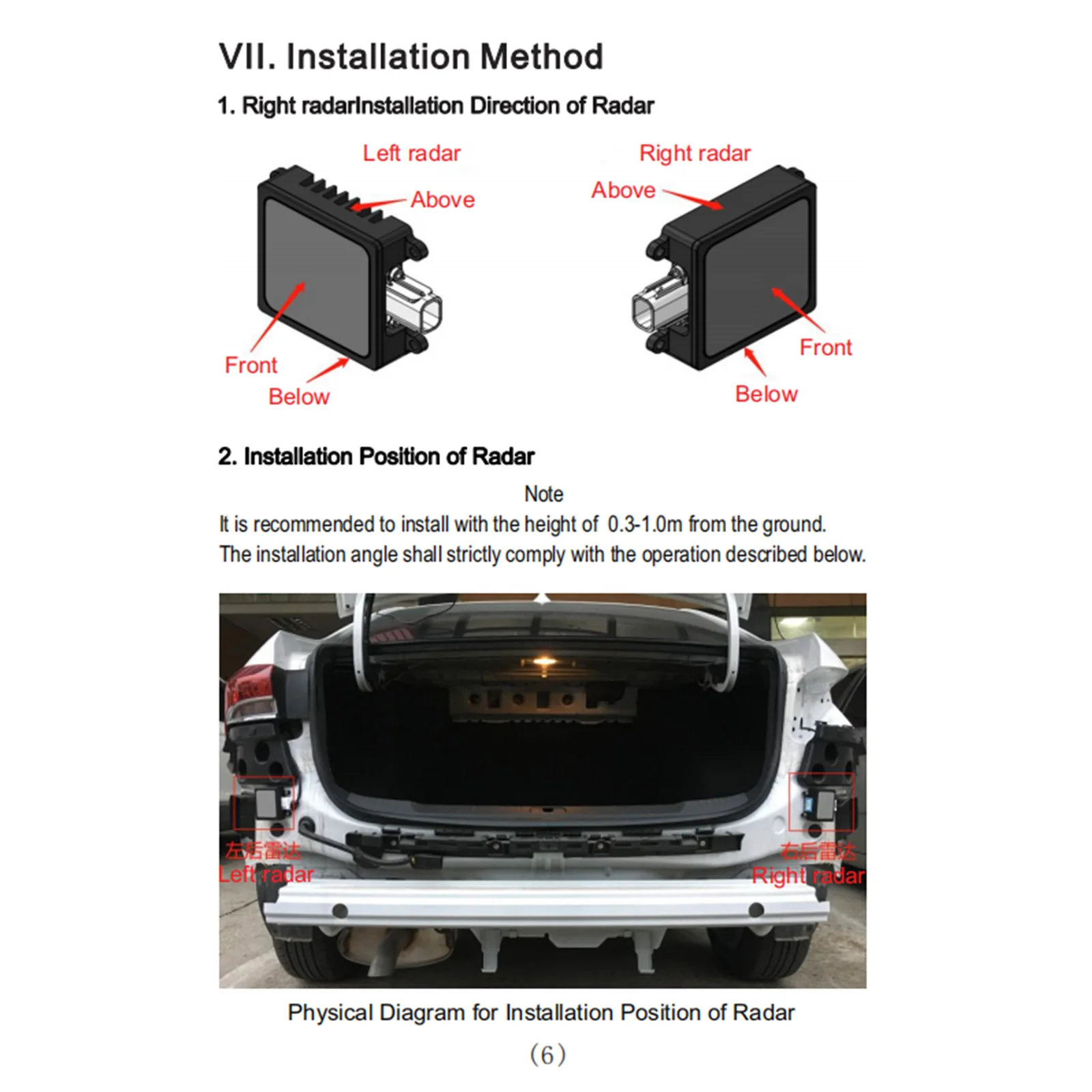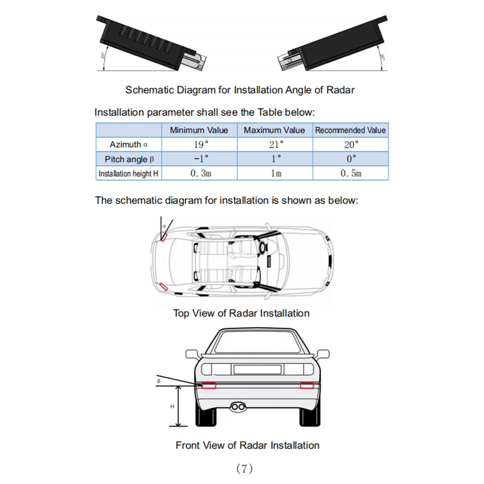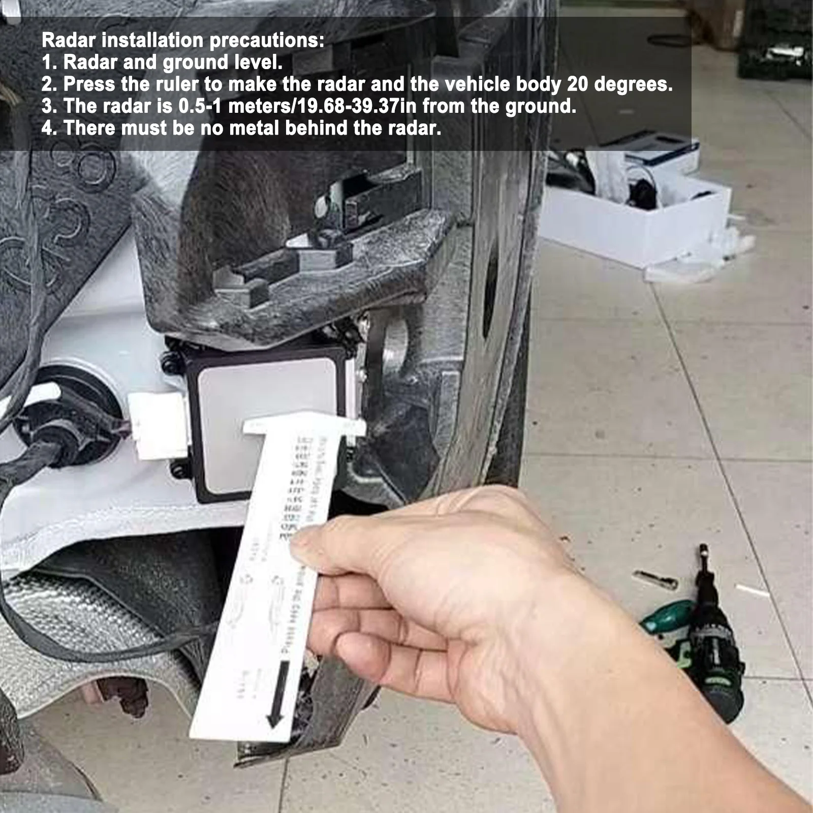 Note: It is recommended that the installation be carried out by professionals. The installation angle of radar will affect the detection distance and effect. Please install it strictly according to the instructions. Light shooting and different displays may cause the color of the item in the picture a little different from the real thing. The measurement allowed error is +/- 10-30mm.