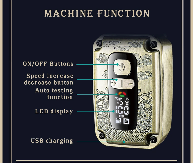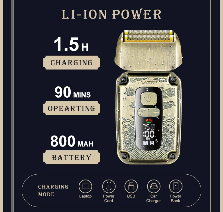 Function: wet haircut,dry haircut,Automatic power selection based on bristle density,Fast Charging,Charging indication
