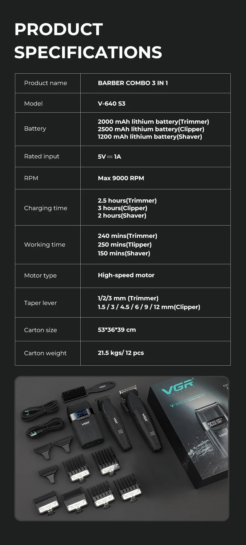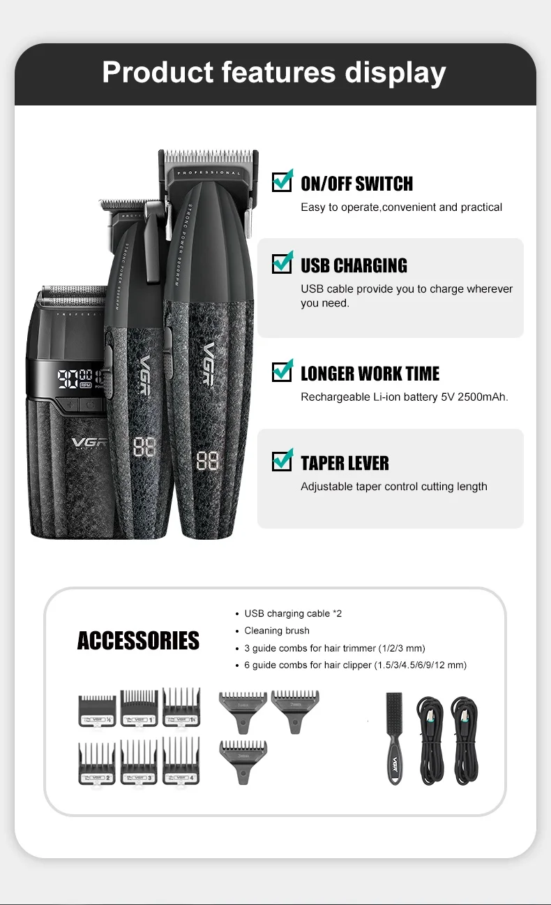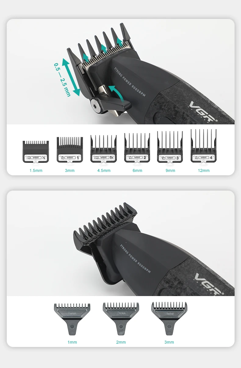 ★ Versatile Comb Guides for Customization:Promote the variety of comb guides included with the trimmer, enabling users to achieve desired hair lengths and styles with ease, adding value to the overall grooming experience.