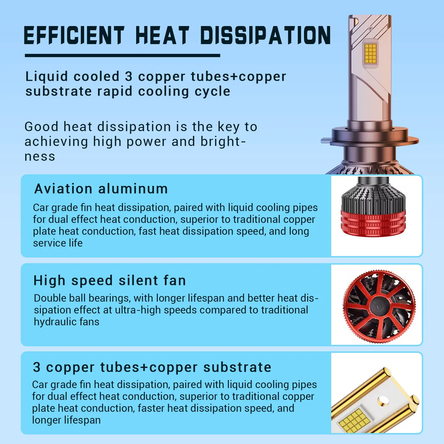 Heat dissipation principle: copper strip + aviation aluminum + 3 copper substrate + 3 copper tube heat dissipation;