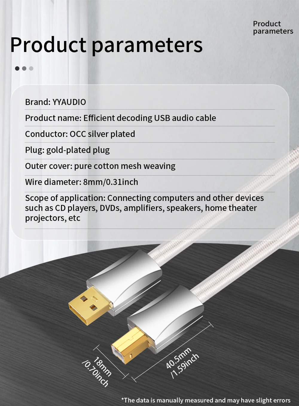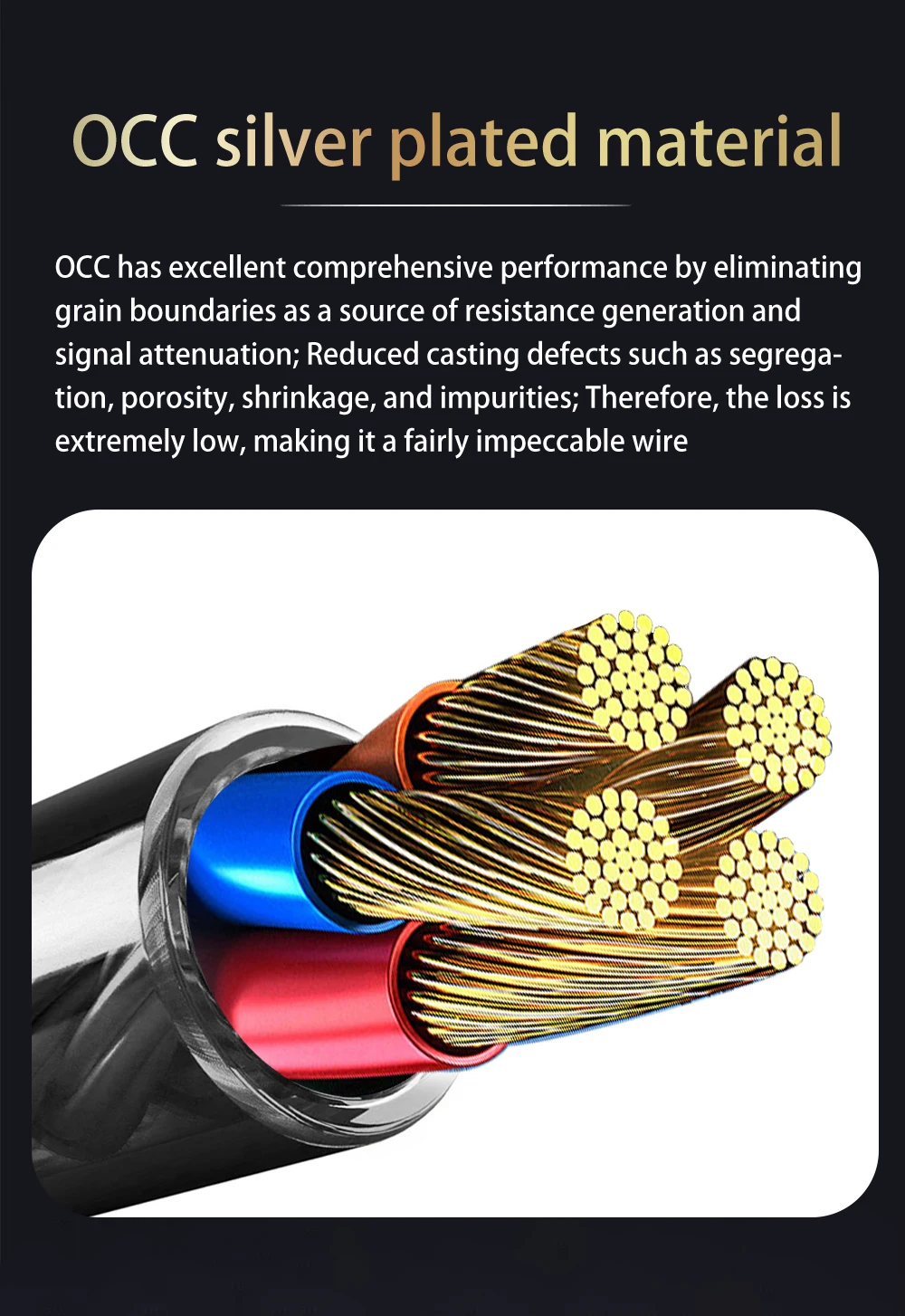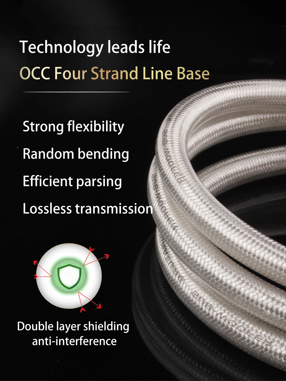 3. Taiwan YYAUDIO wire features: seven-layer four-coredesign, three-layer parallel structure, double anti-staticmesh cover.The conductor is silver-plated 99.999% puresingle crystal copper (OCC), shielding is also silver-platedoxygen-free copper densely woven, effectively protecting the wire core and shielding from external interference.