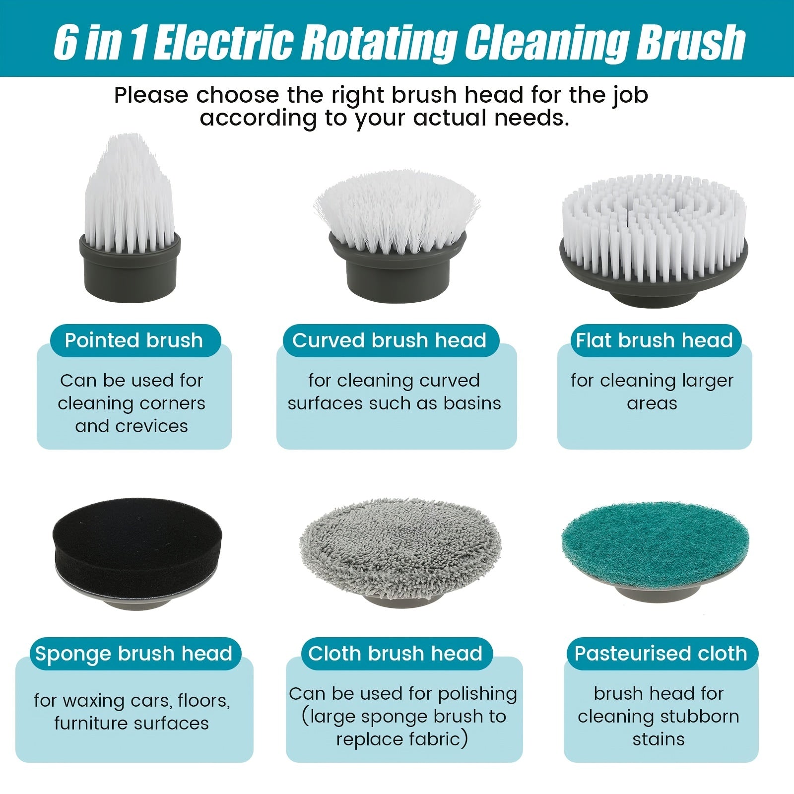 7 -in -1 electric rotating ground machine: equipped with 6 replaceable brush heads and 1 removable host, you can easily clean the kitchen, bathroom, floor, or any area of the car.