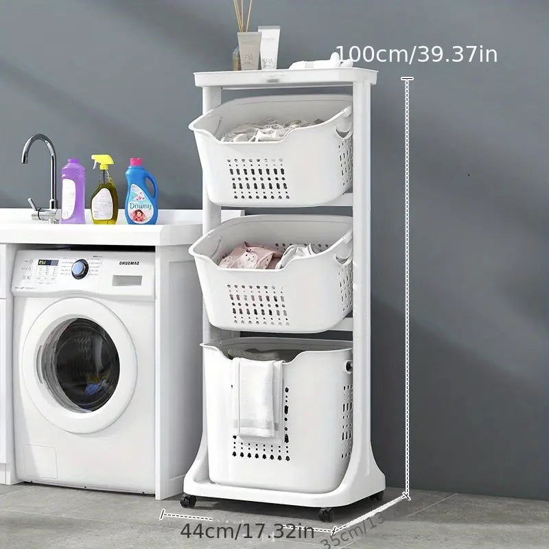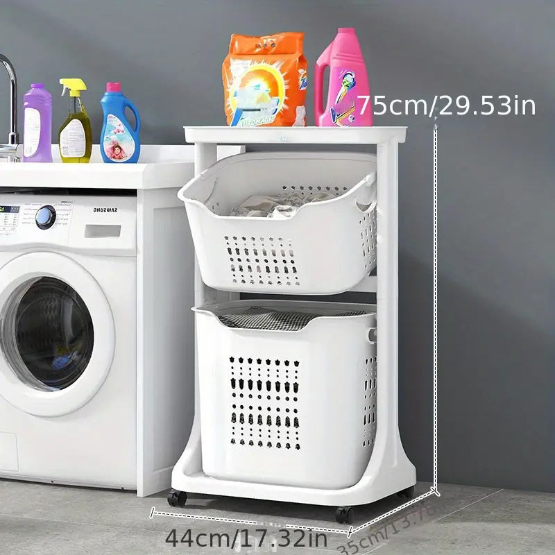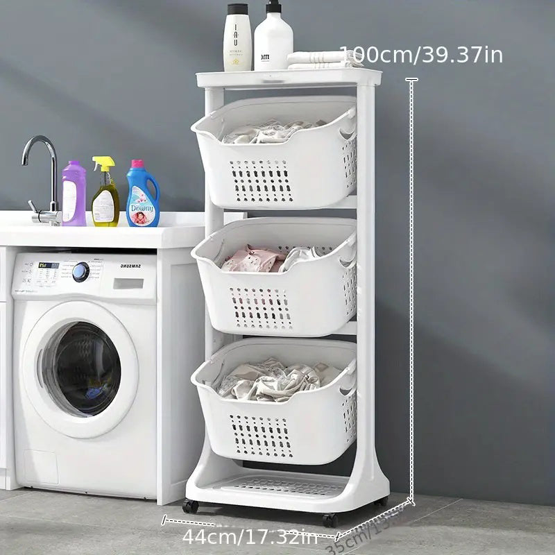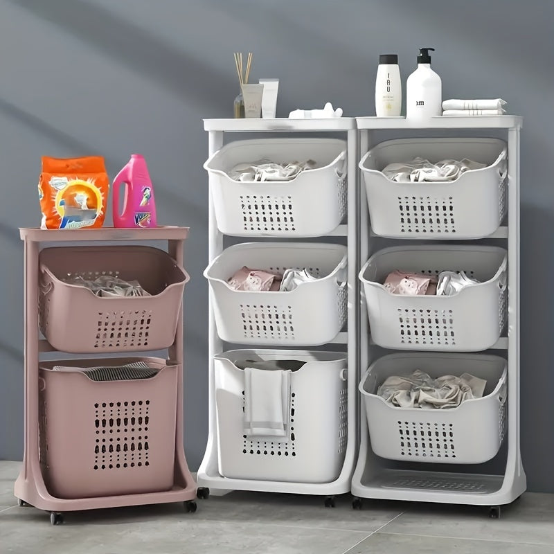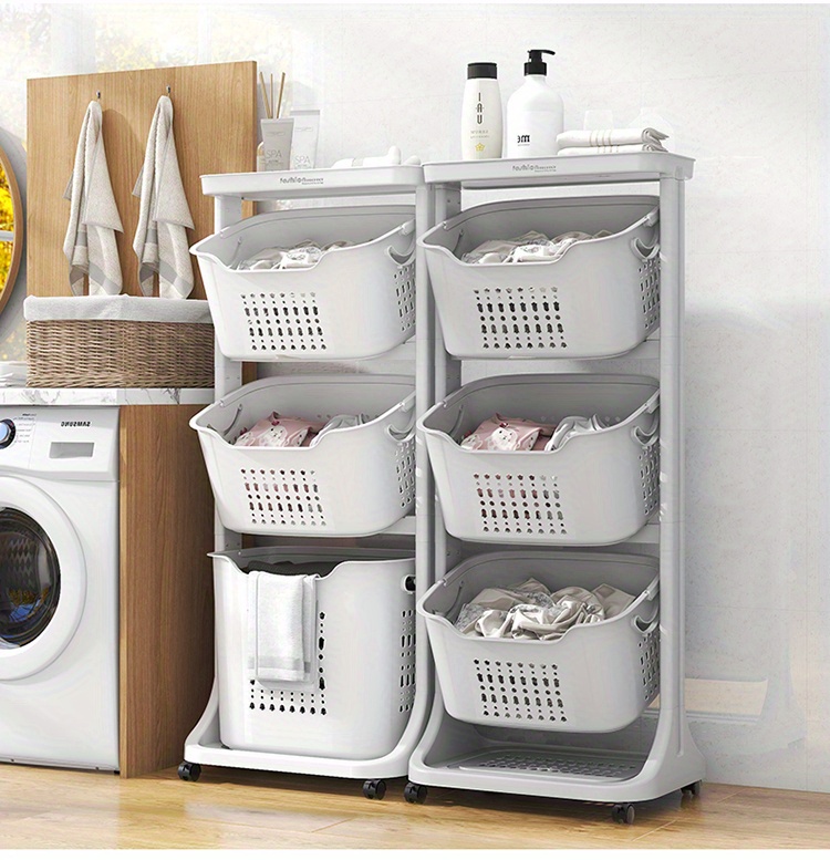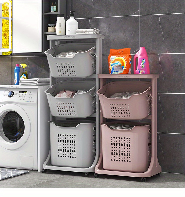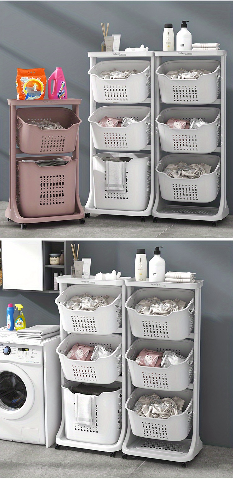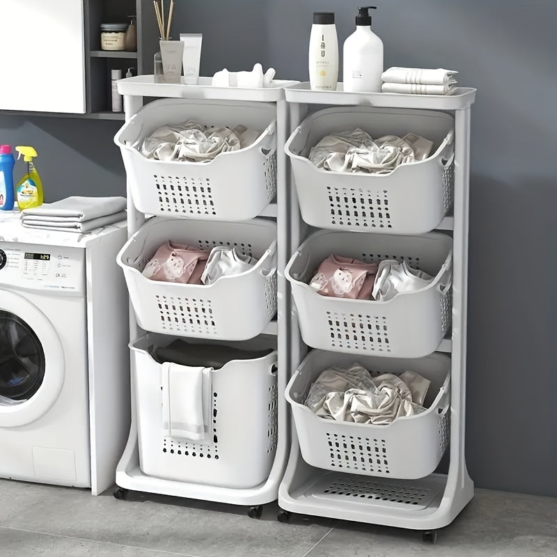 1pc 360 Degree Rotating Multifunctional Laundry Basket with Layered Storage Design for Bathroom and Household Use