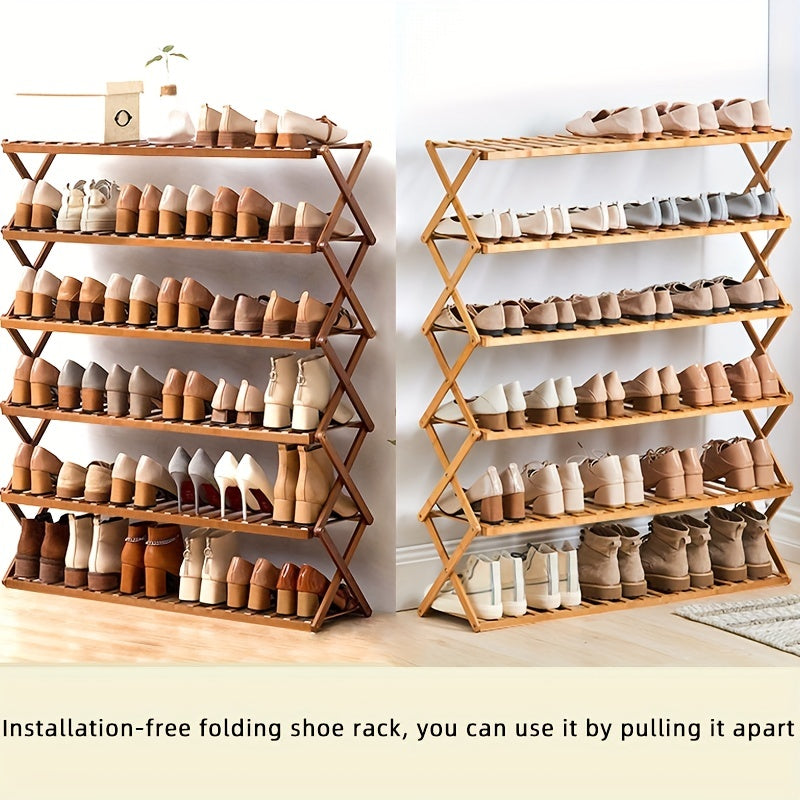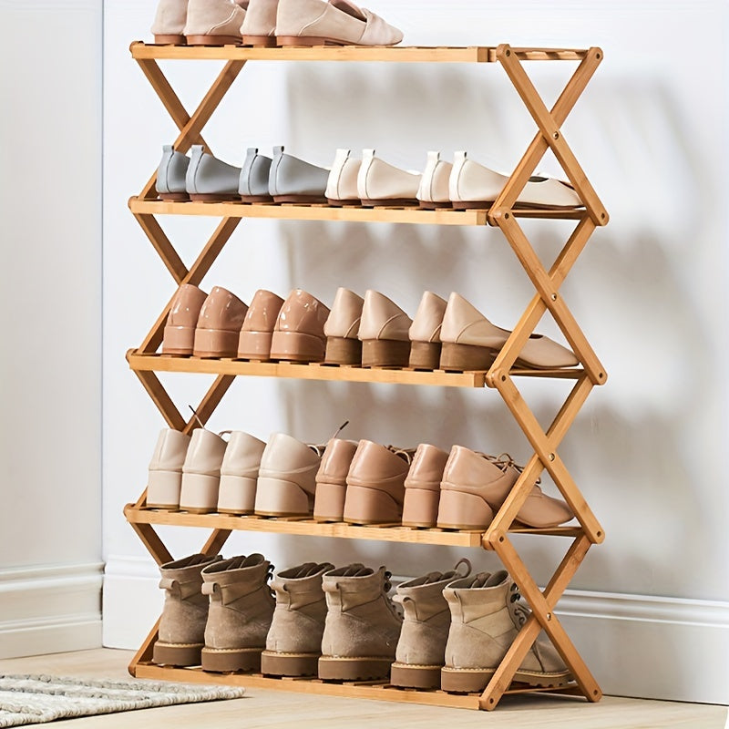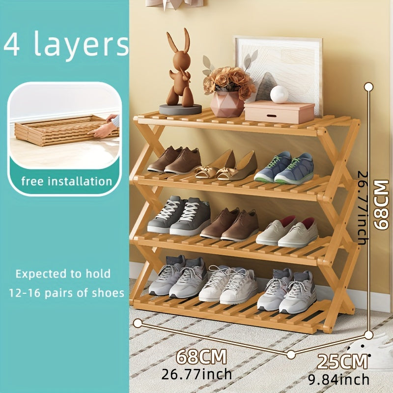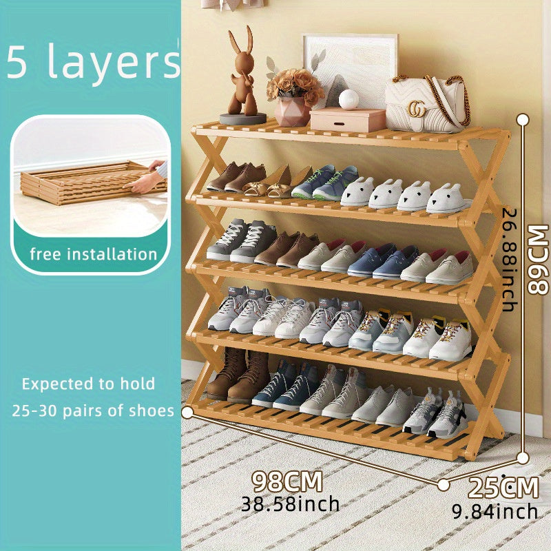 1pc 4/5-layer Bamboo Shoes Storage Rack, Free Standing Shoes Rack, Installation Free Shoes Storage Shelf, Large Capacity Shoe Shelf, Suitable For Rental House, Entryway, Hallway, Bedroom, Bathroom, Living Room