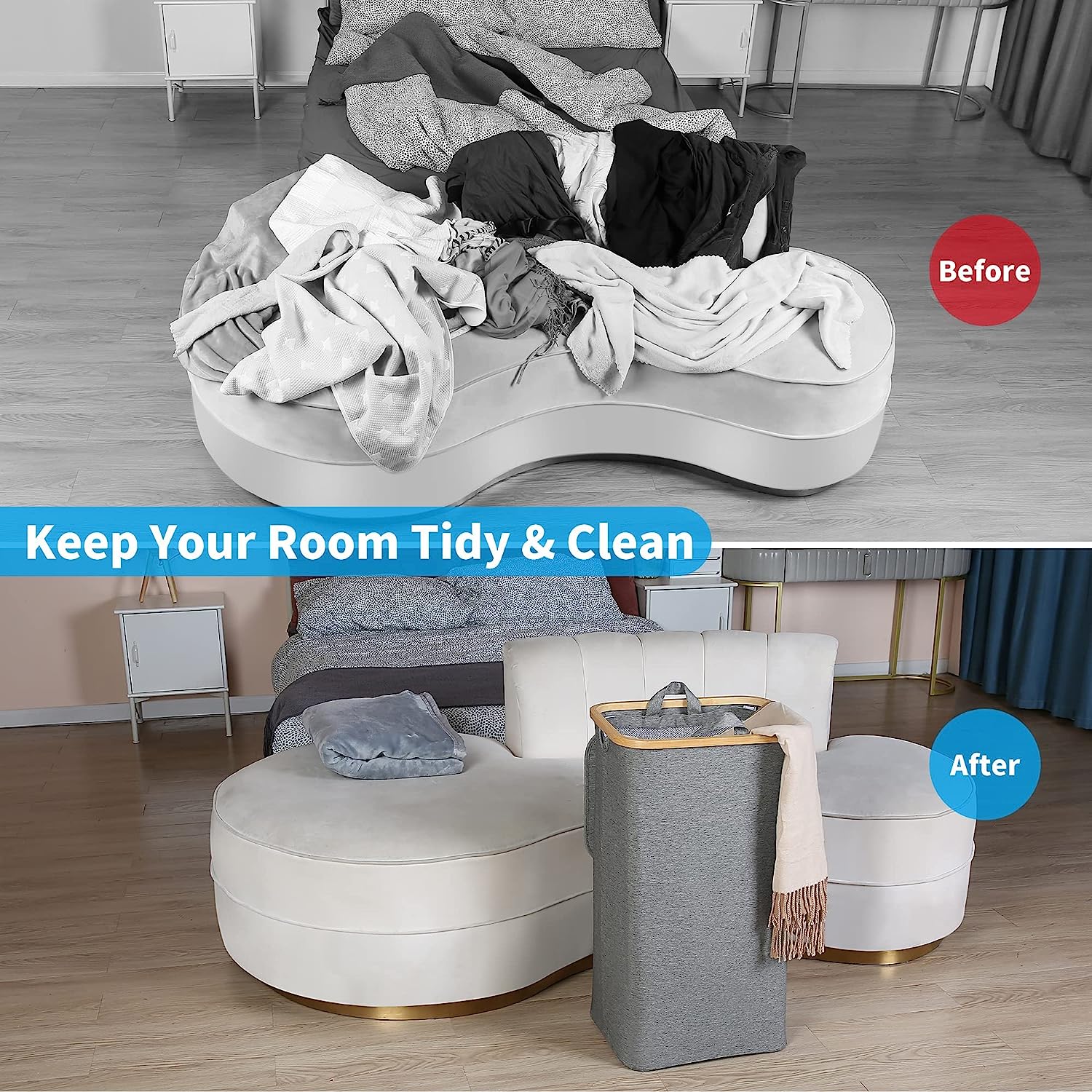 【Durable & Sturdy Material】The laundry basket organizer is made of thicker cloth than other brands and won't tear or damage after long time use. Bamboo handle is carbonized to make it smooth, so it won't damage your hands during use.