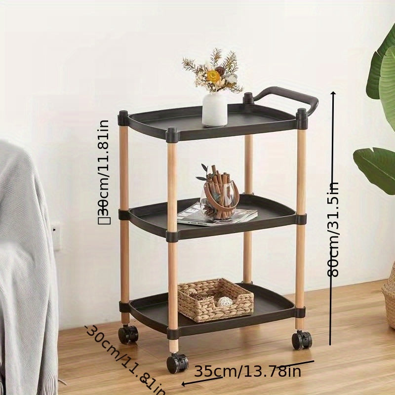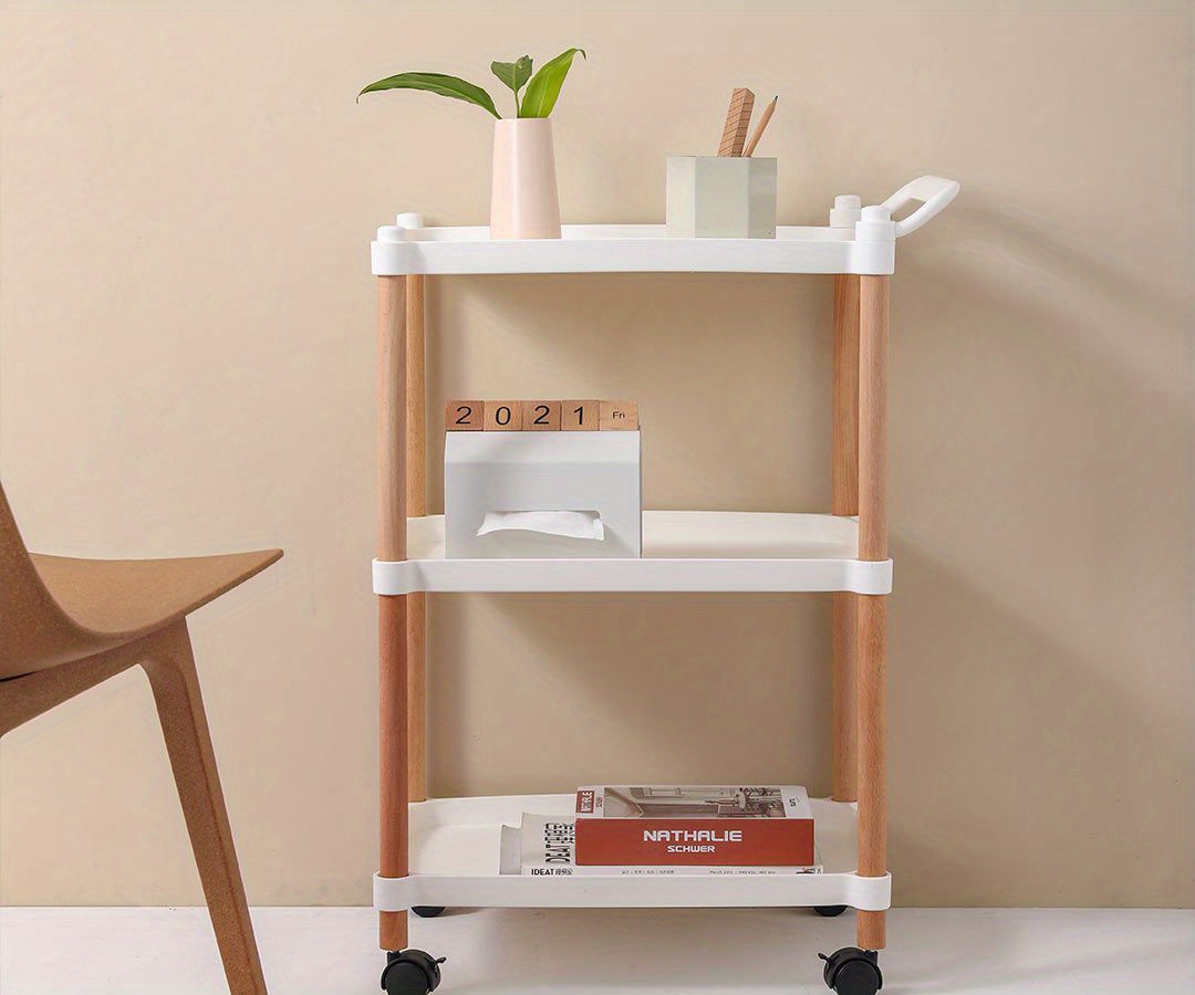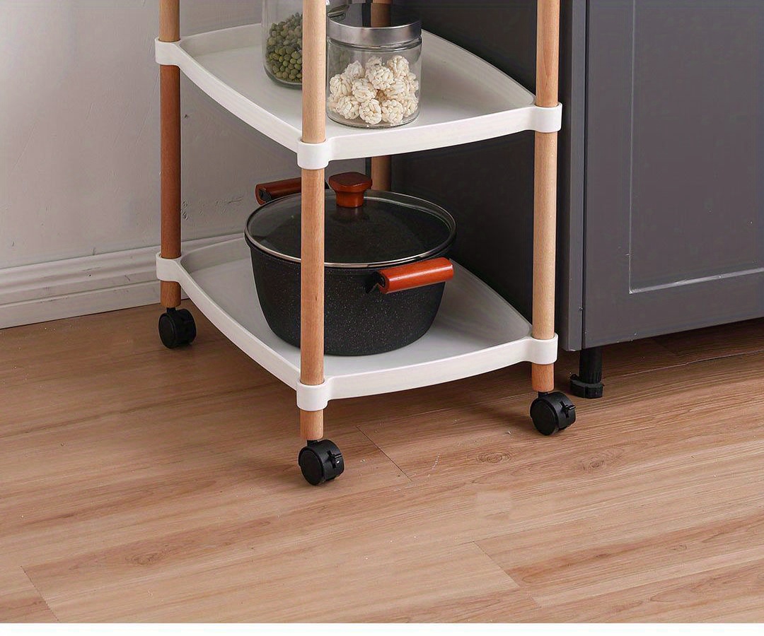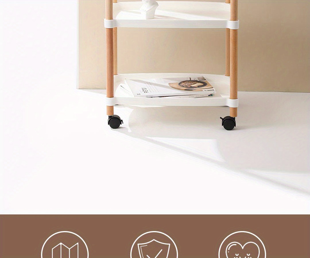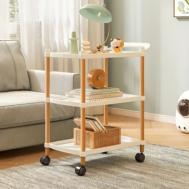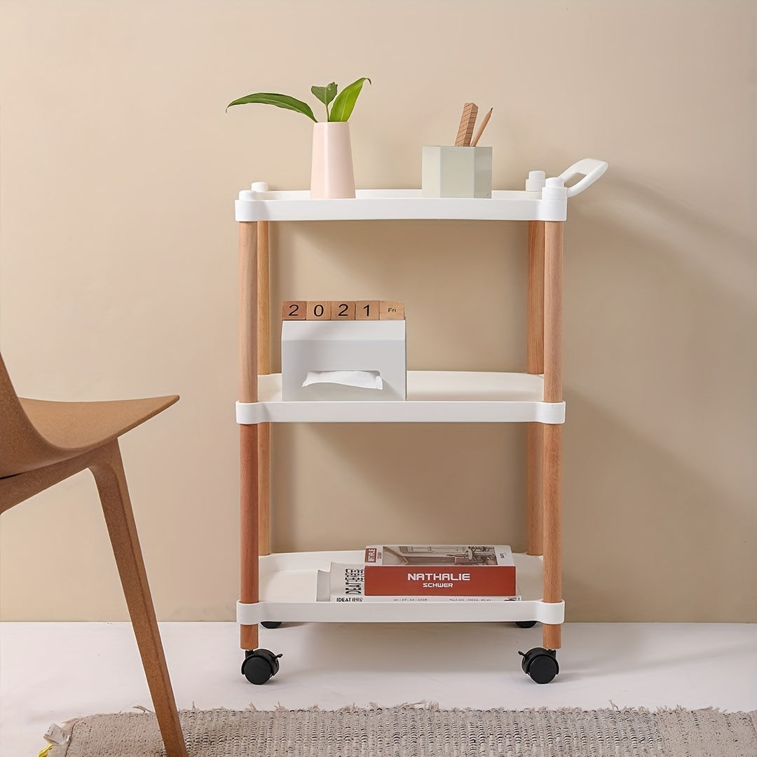 1pc Removable Beech Trolley Storage Rack, Multi-functional Storage Car, Cosmetics And Snacks Storage Rack, Home Kitchen Bathroom Supplies