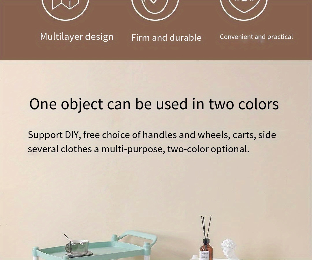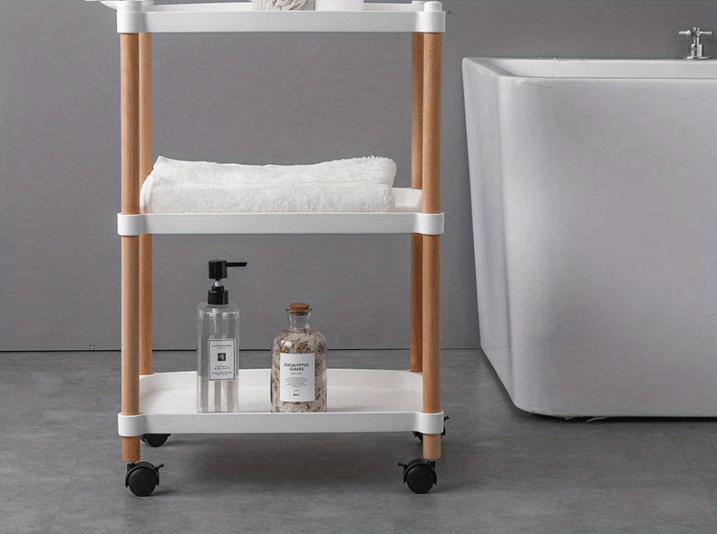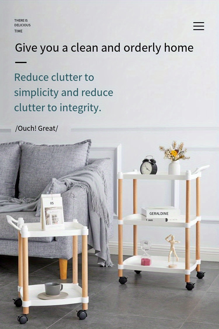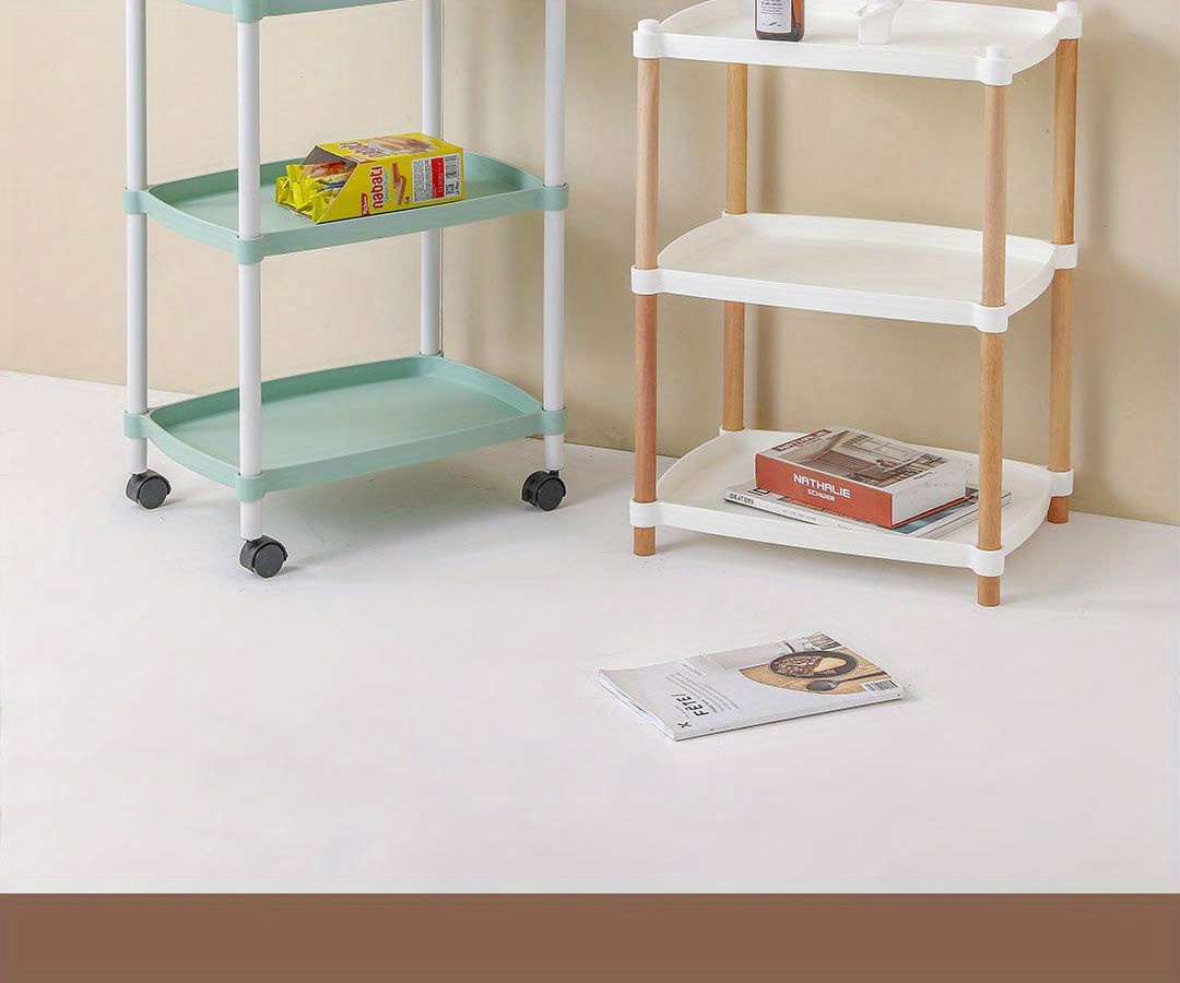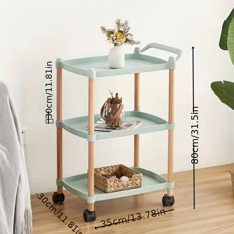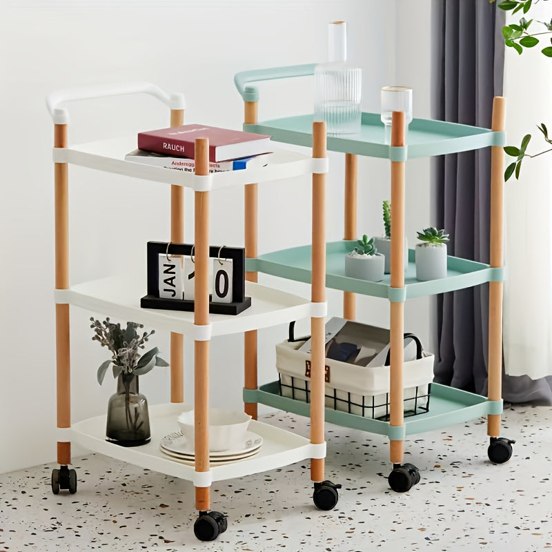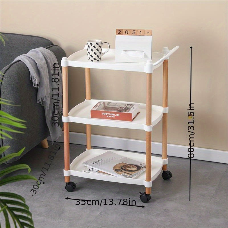 1pc Removable Beech Trolley Storage Rack, Multi-functional Storage Car, Cosmetics And Snacks Storage Rack, Home Kitchen Bathroom Supplies