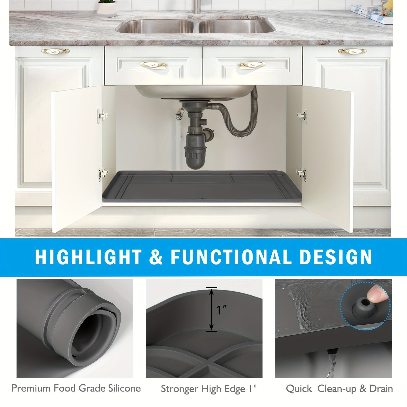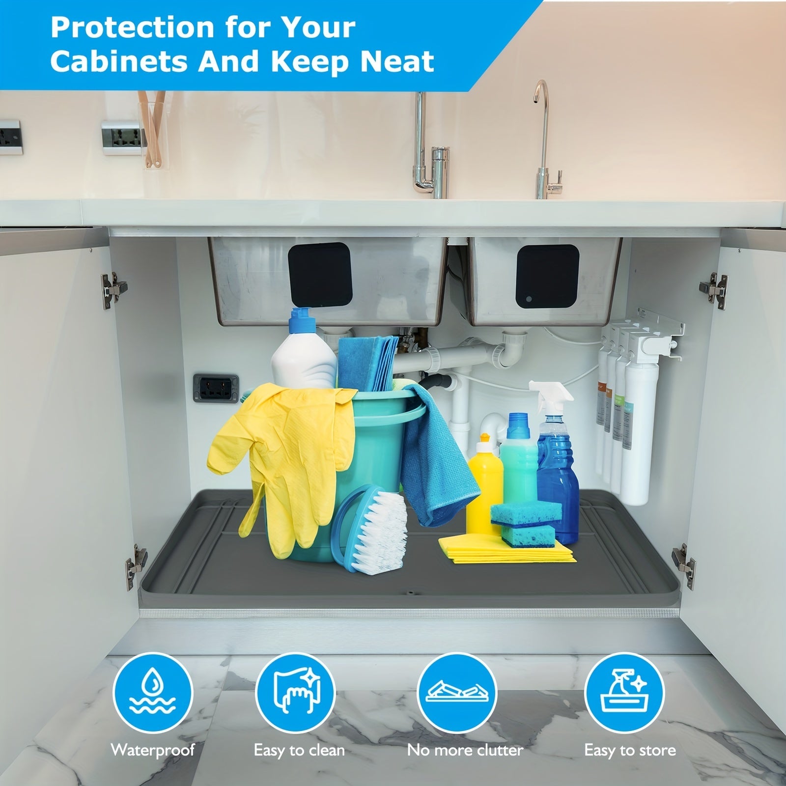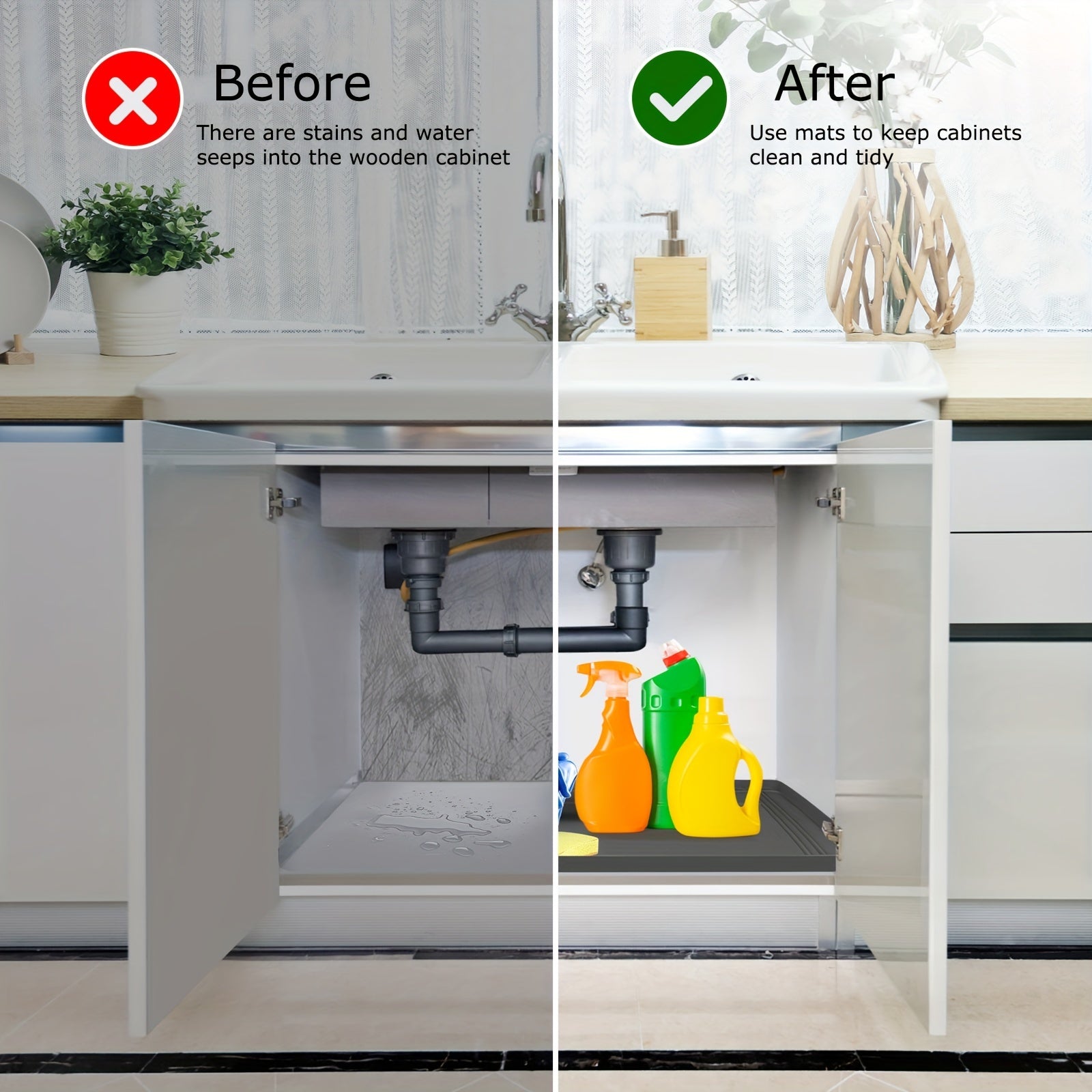 1pc Under Sink Mat For Kitchen Waterproof, 34" X 22" Undersink Mat For Bottom Of Kitchen Bathroom Sink, Thick Under Sink Drip Tray For Leaks And Spills, Easy To Install, Clean And Customizable, Kitchen Accessories