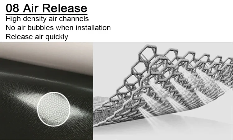 Type of film:High grade polymeric multilayered calendared vinyl film with air release channels