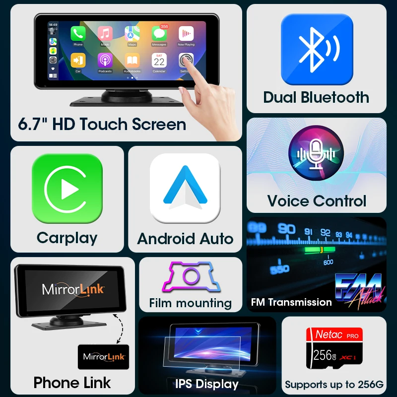 The recorder uses the latest technology, supports Carplay and Android Auto functions, users can easily and safely make calls, listen to music, send and receive messages, use navigation, support Siri, and more.