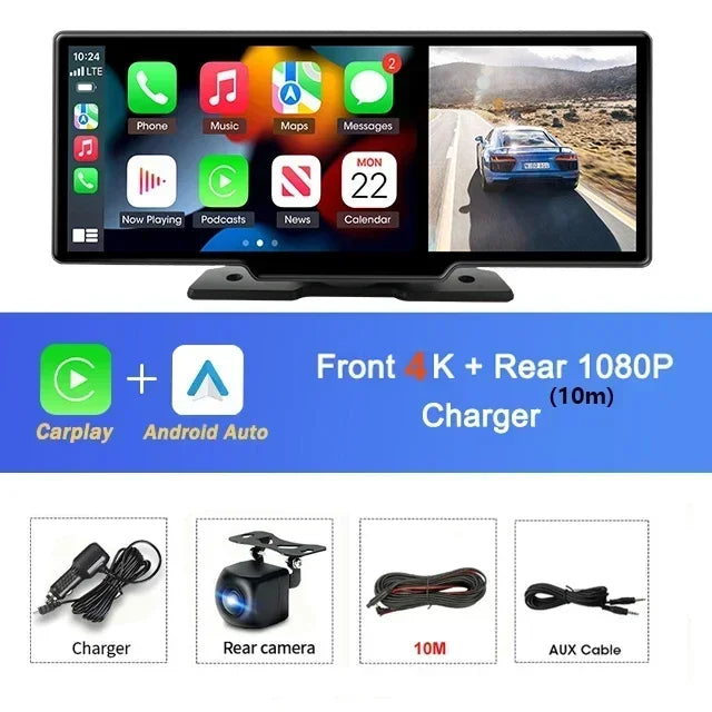 Develuck 10.26" Car DVR 4K Carplay & Android Auto Dashcam Voice Control GPS Wifi Recorder Dual lens 1080P Rear Camera 256G Max