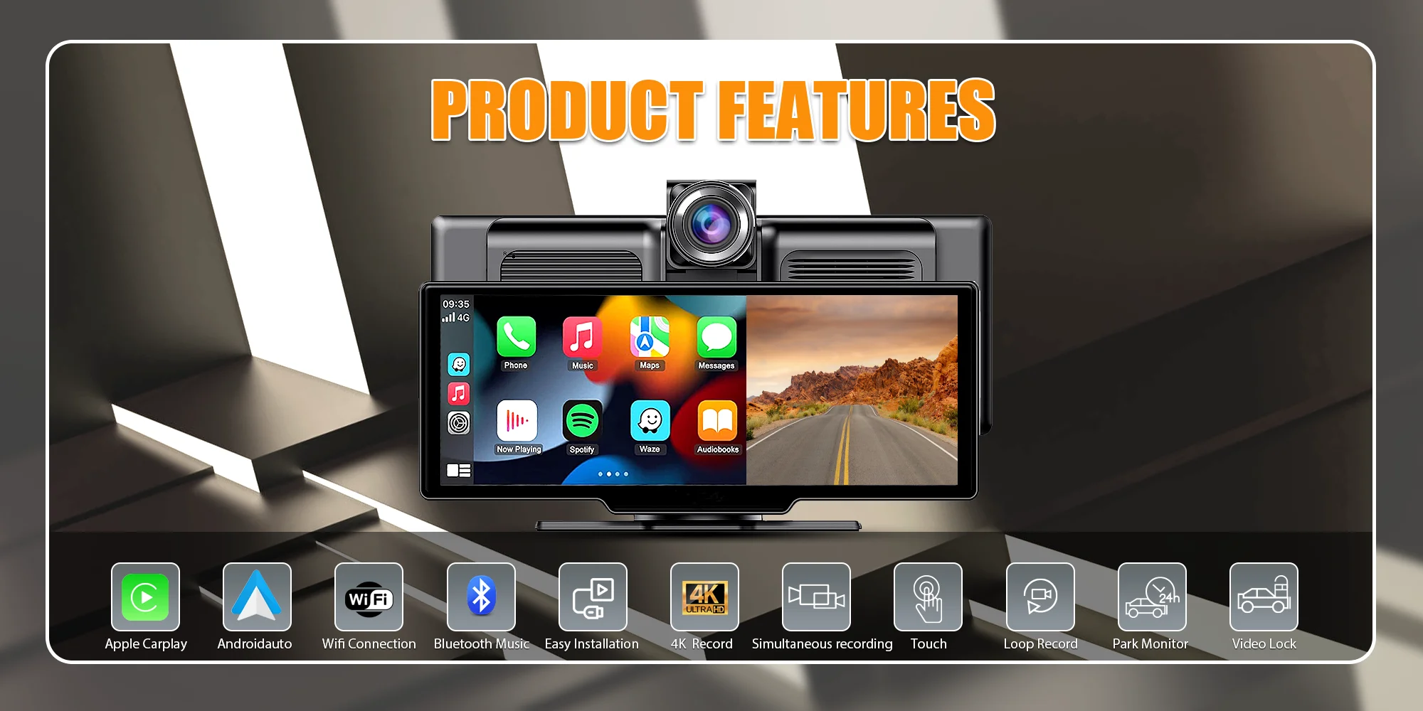 7, GPS Navigation:In CarPlay mode, the DVR can realize the GPS navigation function, and you can directly wake up the voice assistant and say your destination, it will help you plan your route, which is more convenient and safe for your drive.(Note: The DVR itself does not have GPS navigation software)