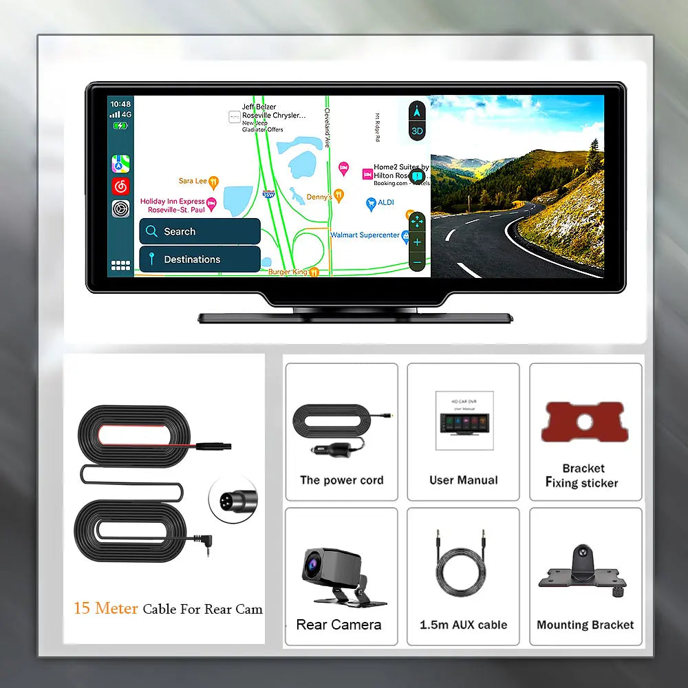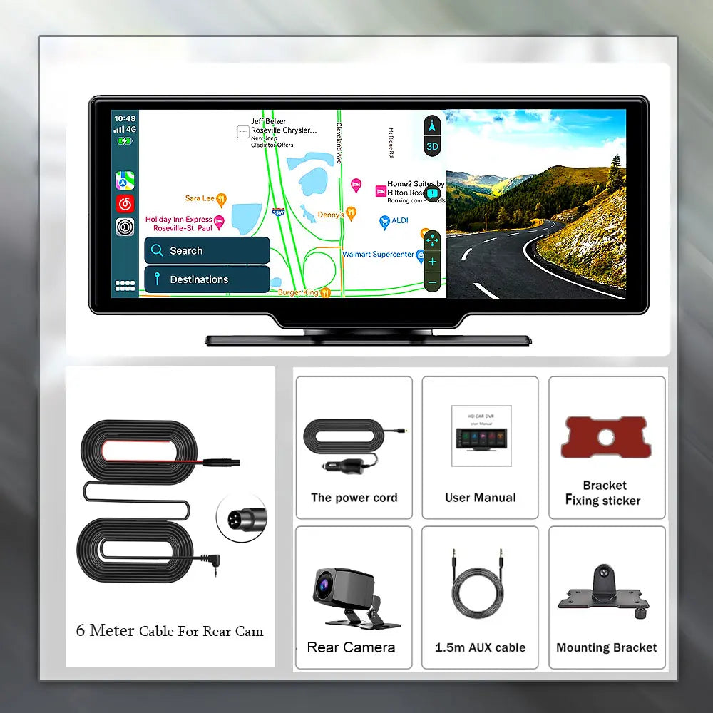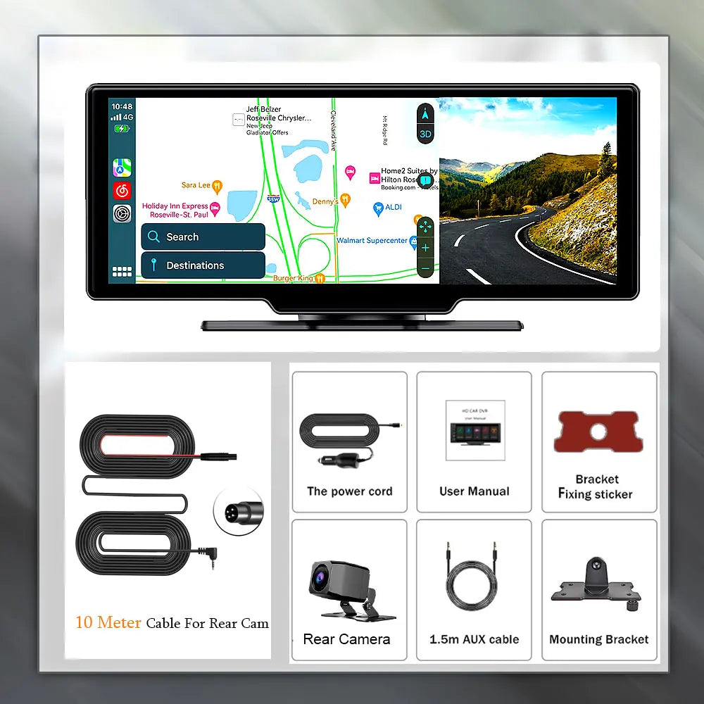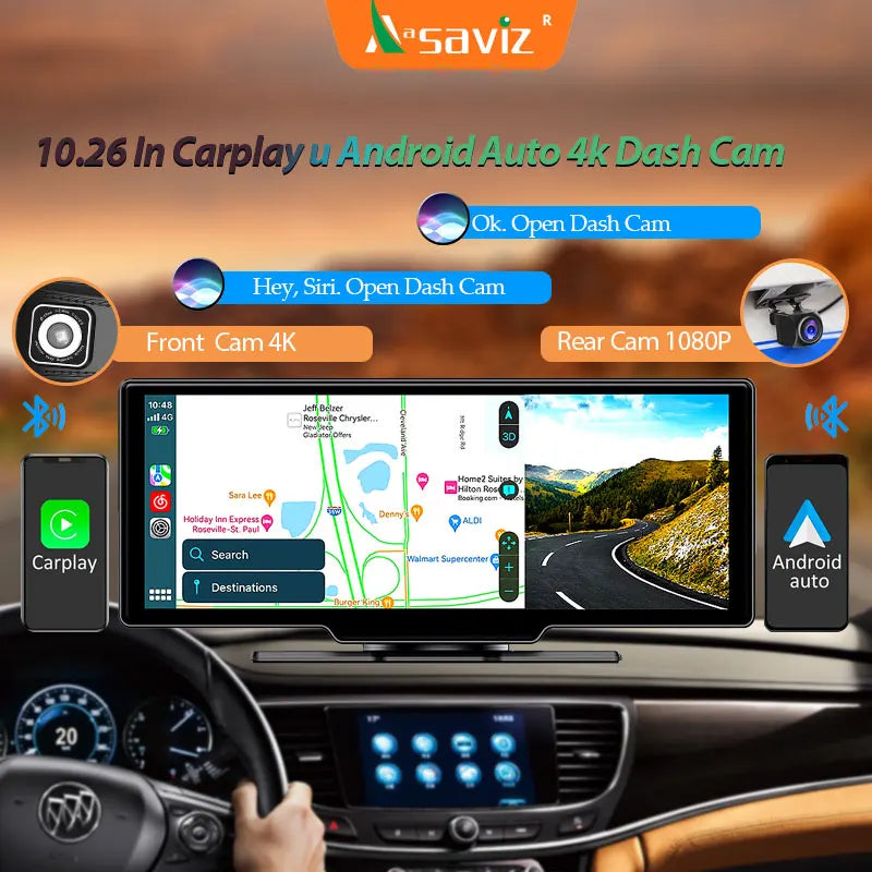 10.26" Dash Cam With Voice Control  Mirror Monitor Wifi Record Dual lens Rearview Camera Carplay & Android Auto Smart Player