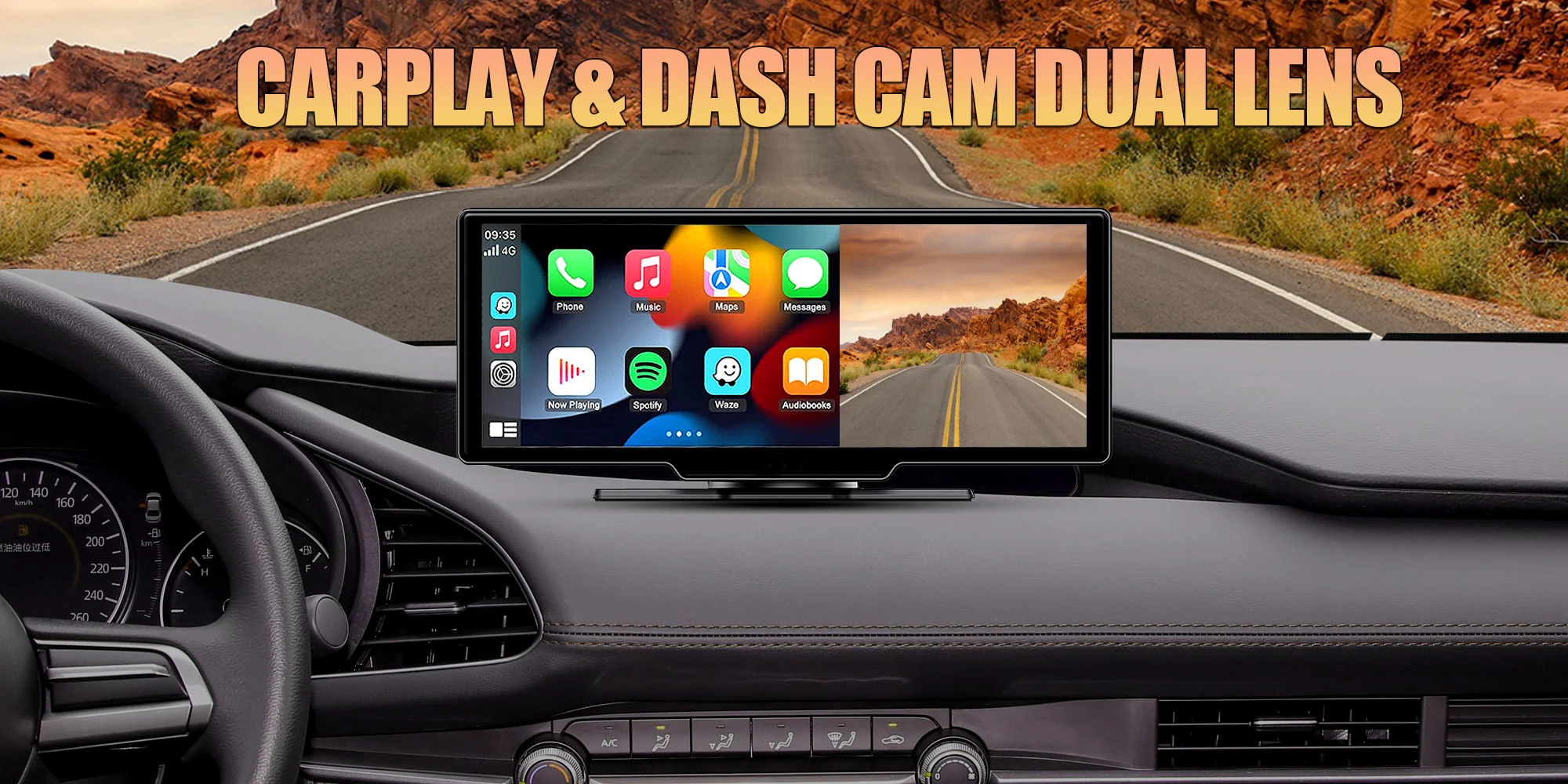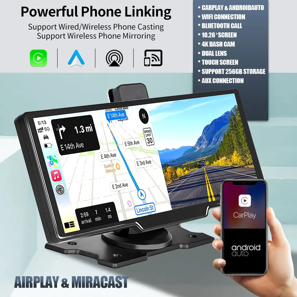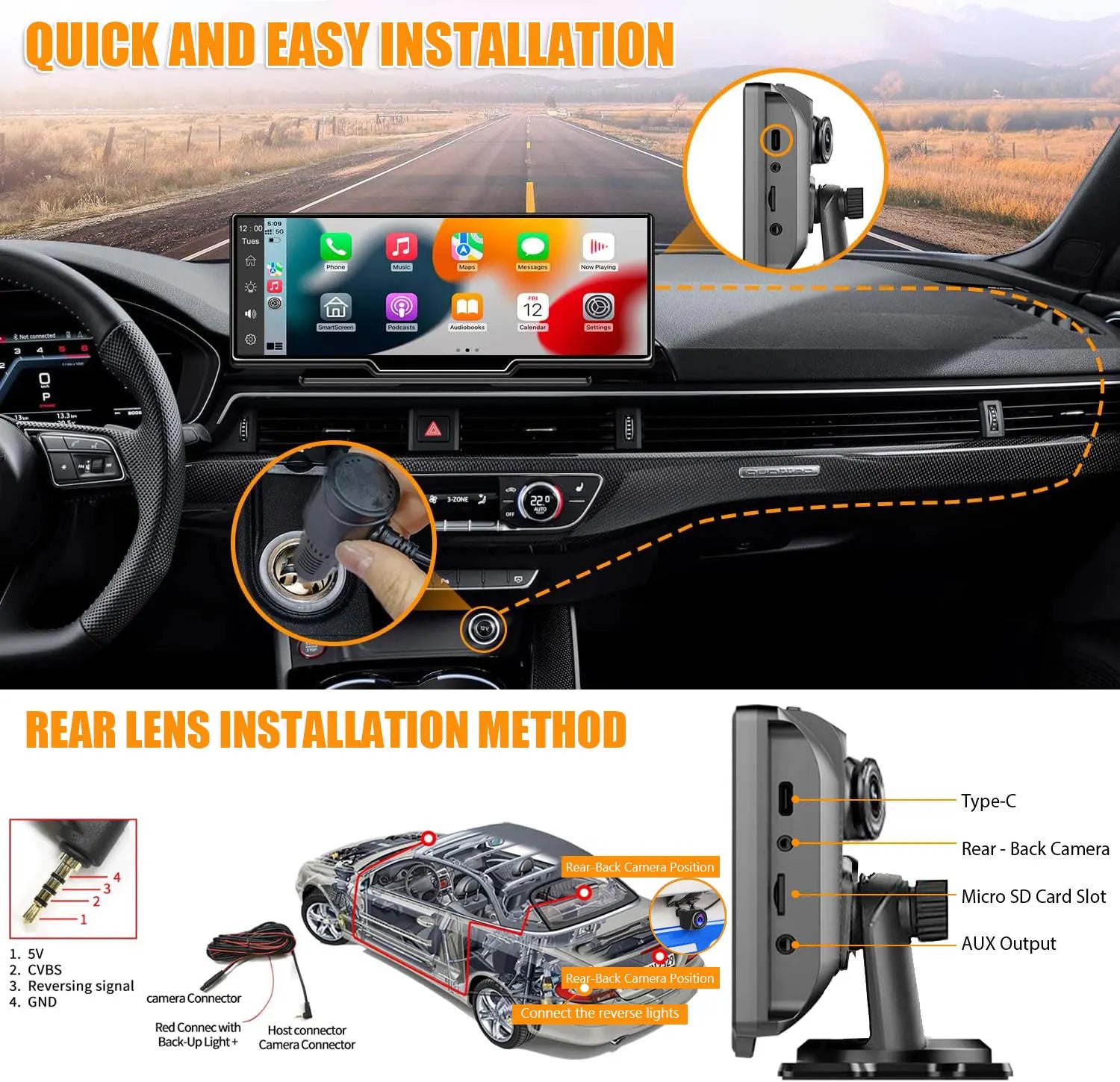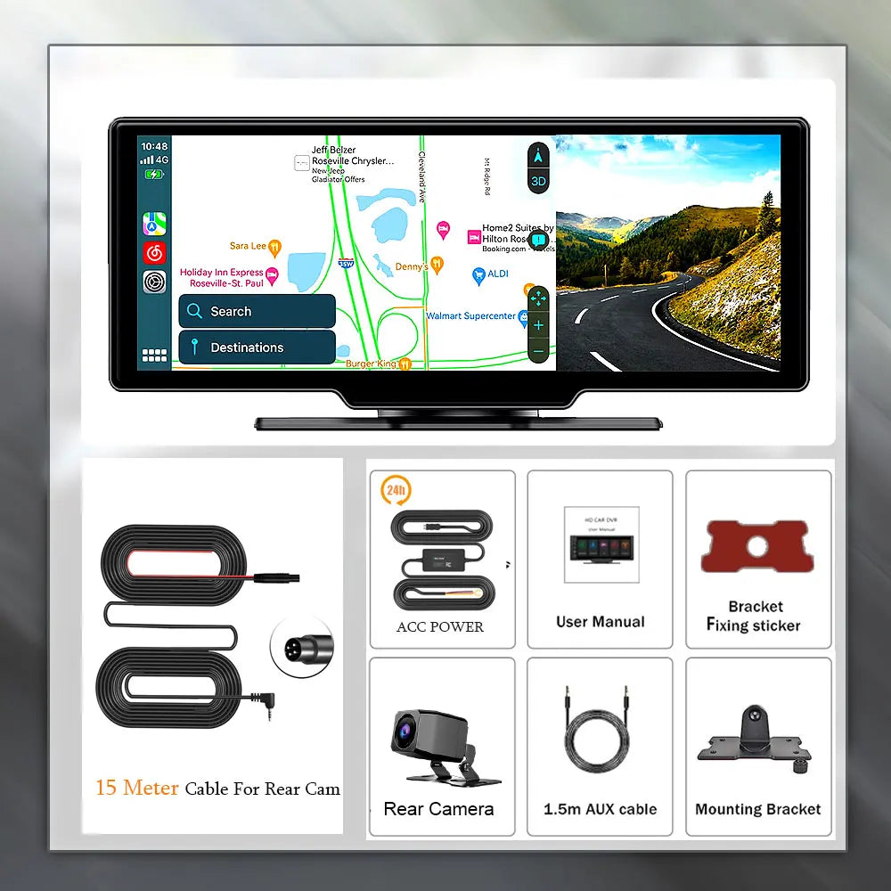 10.26" Dash Cam With Voice Control  Mirror Monitor Wifi Record Dual lens Rearview Camera Carplay & Android Auto Smart Player