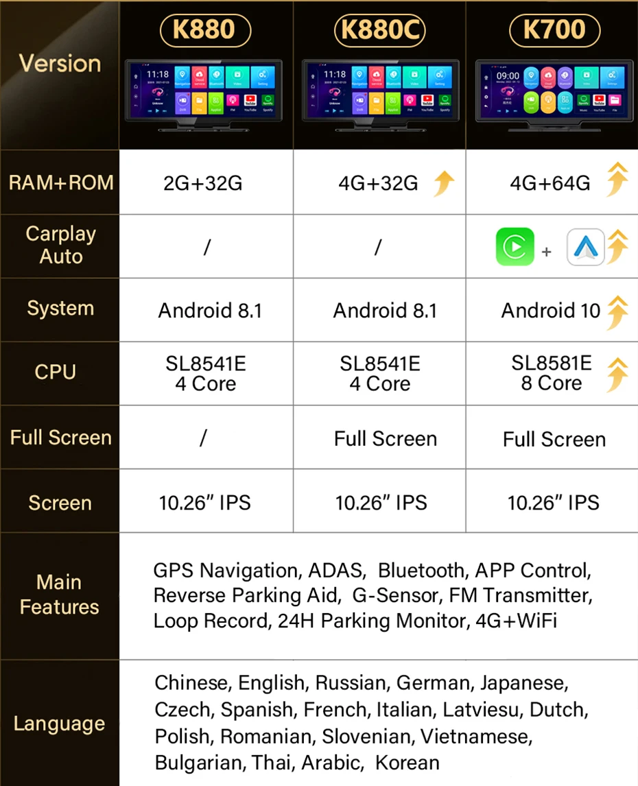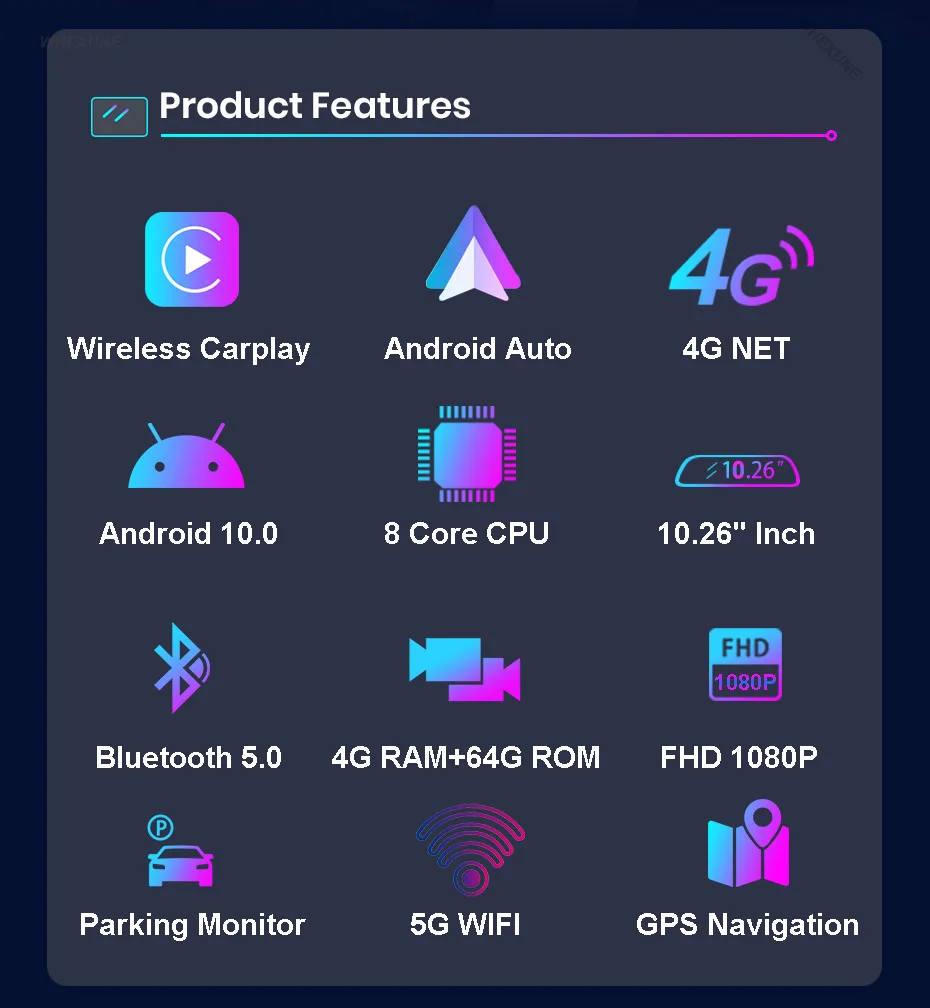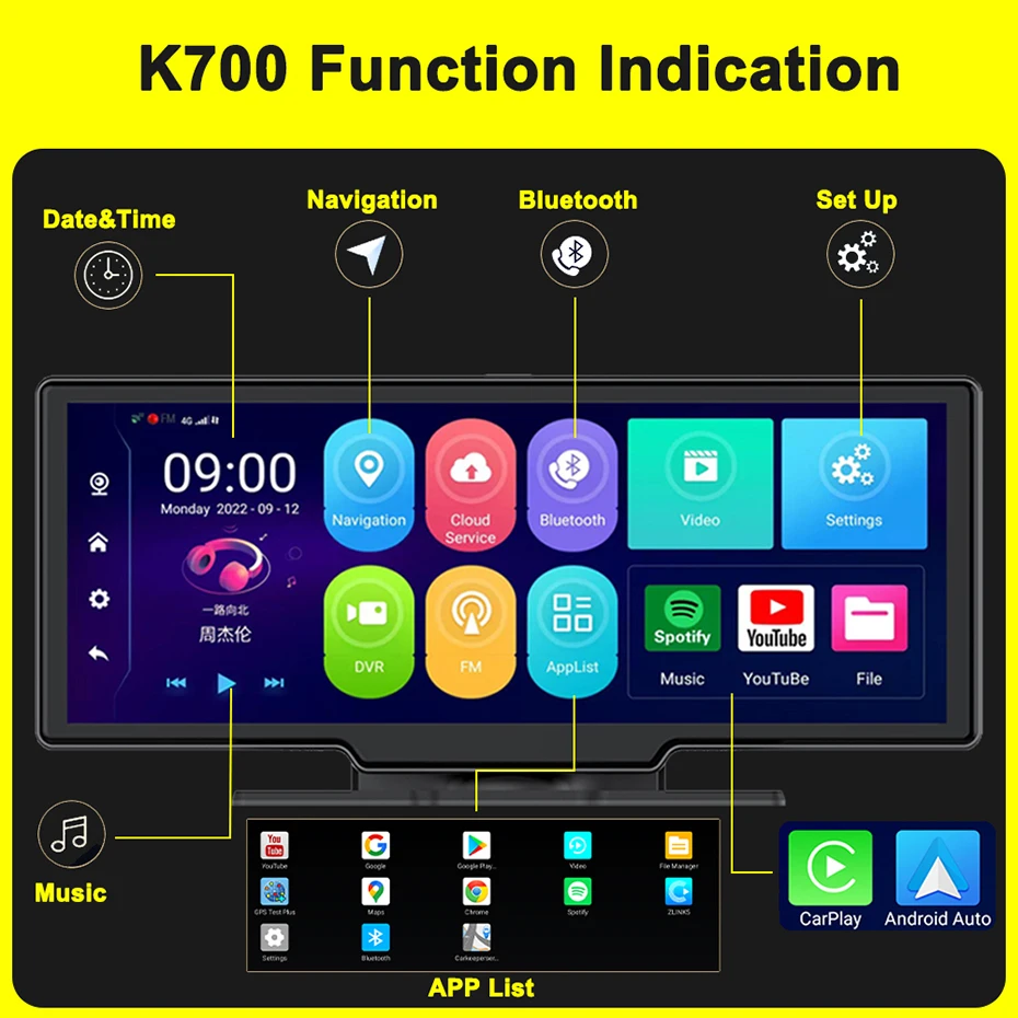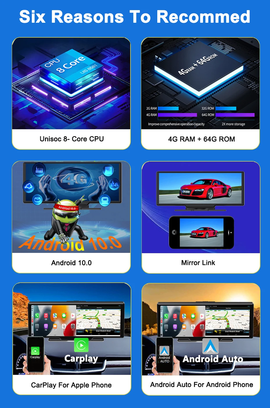 Apple Carplay+Android Auto+Android 10+Screen Mirror+8 Core CPU+RAM 4G ROM 64G