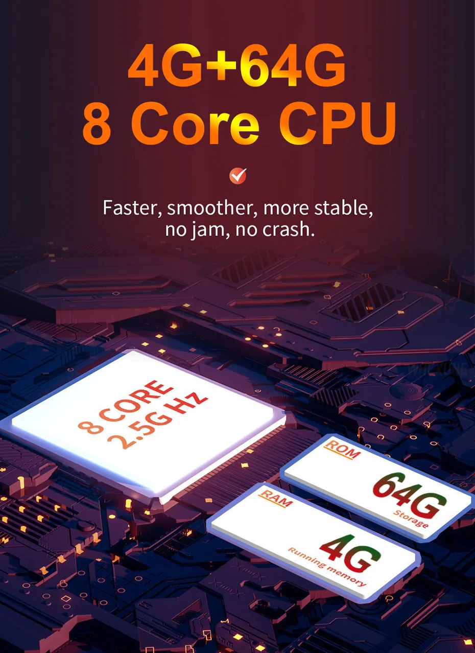 1. With 8 Core 4G RAM + 64G ROM: