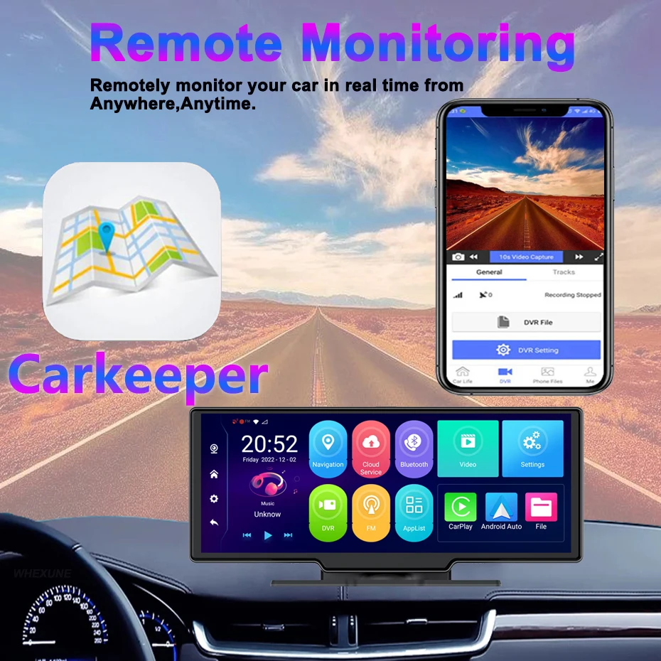 Track the location of your car, remotely capture what happen to your car from anywhere in the world. View images and watch video clips of your car with App on your smart phone once you are connected to the internet.