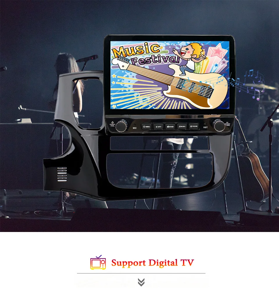 Device support Digital TV ,you can use it connect with TV box to enjoy your good driving.will never miss the alive show in the trip.