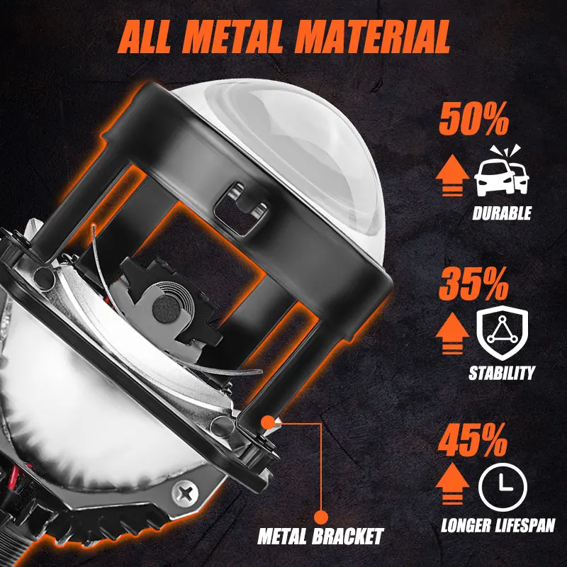 Easy Installation: With threaded-shaft, allows the projector to be locked on with their included hardware, it can be mounted in H4/H7 reflectors with none or minimal modifications.