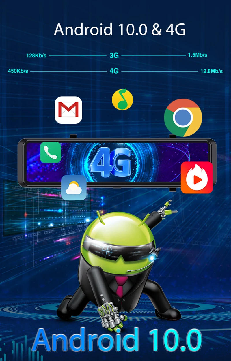 The 8 core with 4*A55 1.6GHz + 4*A55 1.2GHz, High performance processor incorporates Android 10 smart systems. it makes the car dvr runs more quickly. You can download any APP from google play store.