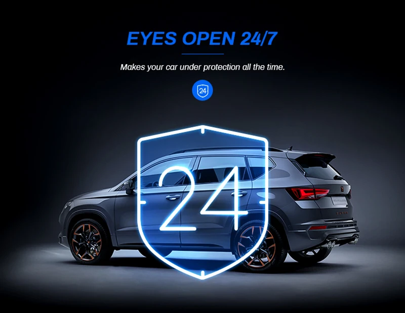 When someone near your car or vehicle starts to move, Automatically turn on and start recording when detects any impact or collision,the device automatically automatically recording for few seconds,make sure 24hr Parking Guard. Parcel inlcude ODB buck line.