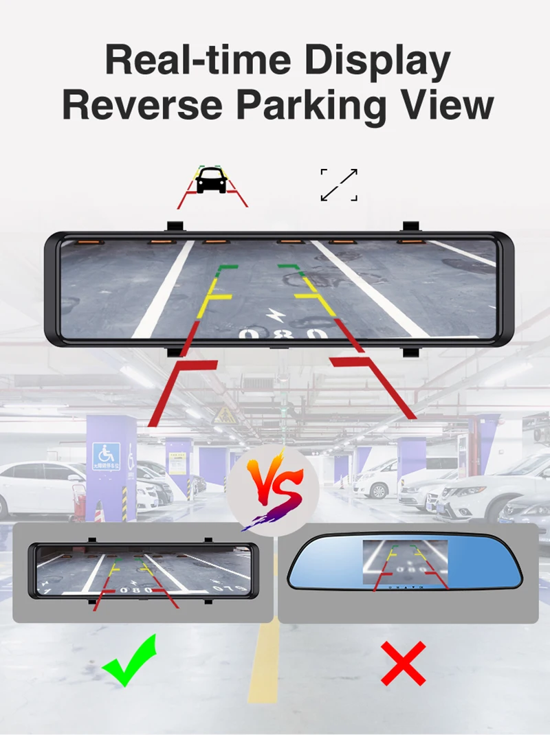 When the car in Reverse Gear, this car DVR will automatically switch to the back-up camera image view with parking line