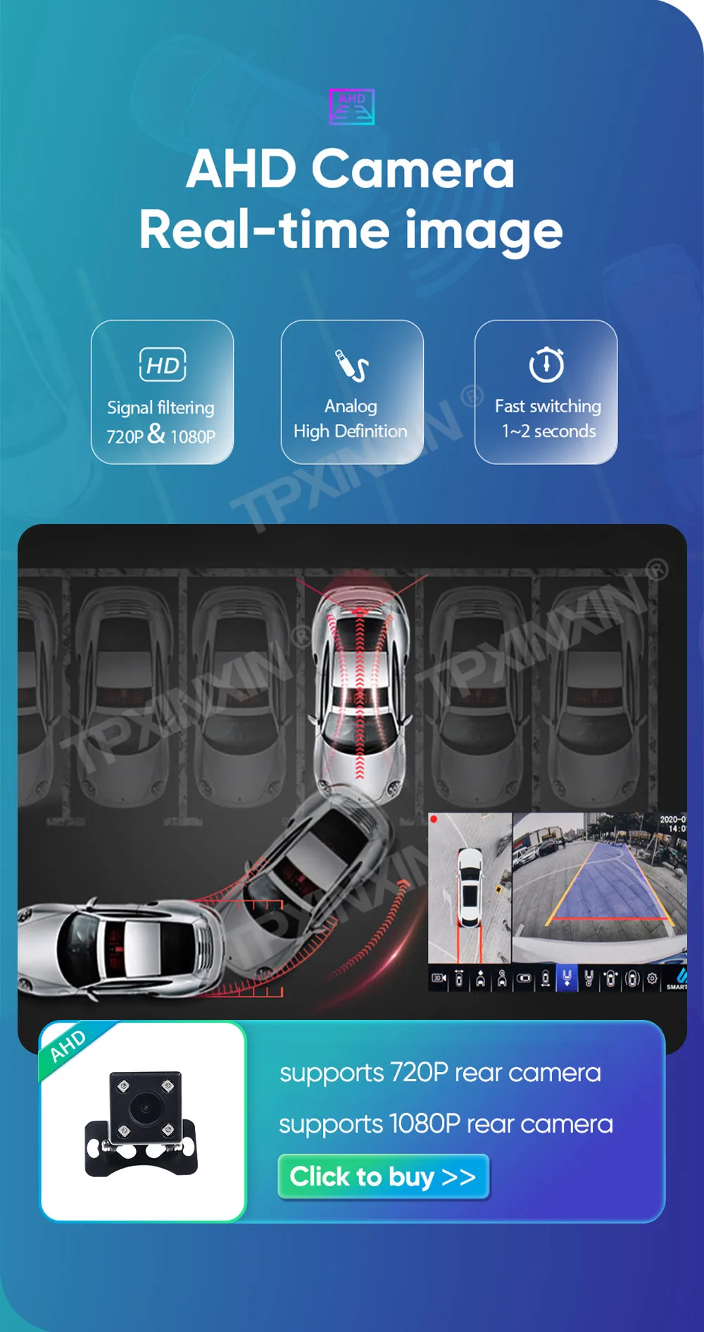 5.Support the rear view camera,when you reversing the car it will work automatically,it can display the revering track.