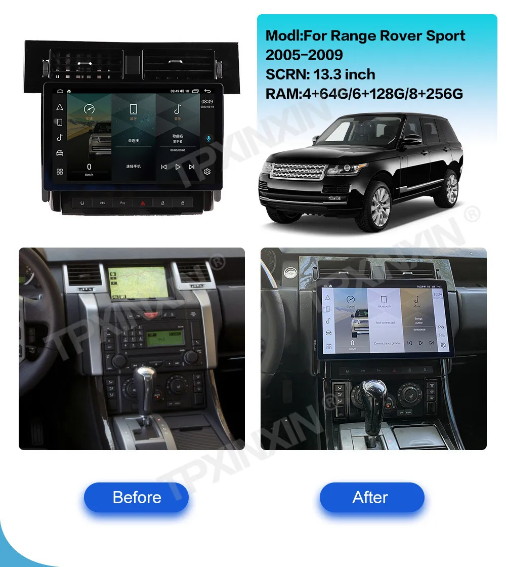 13.3” For Land Rover Range Rover Sport 2005-2009 Car Radio Multimedia Player GPS Navi HD Touch Screen Car Electrical Appliances
