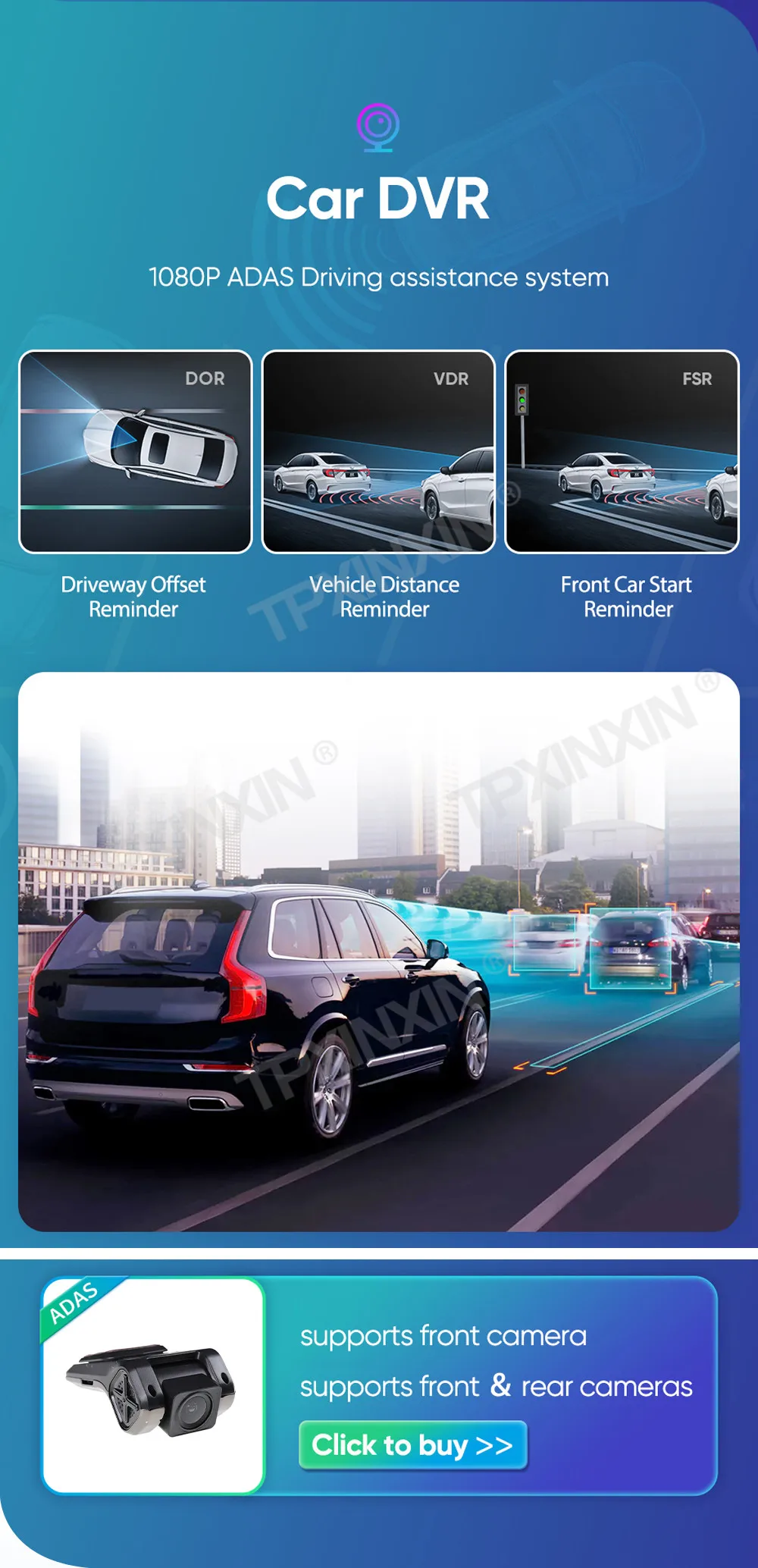 1.Support DVR Function :Support DVR for the front,it will let your journey more safety.