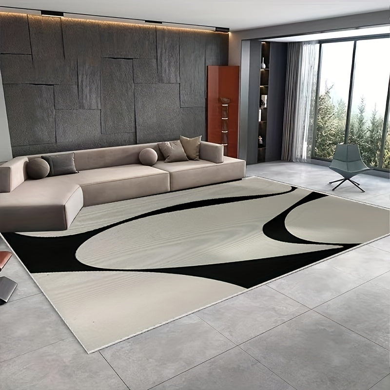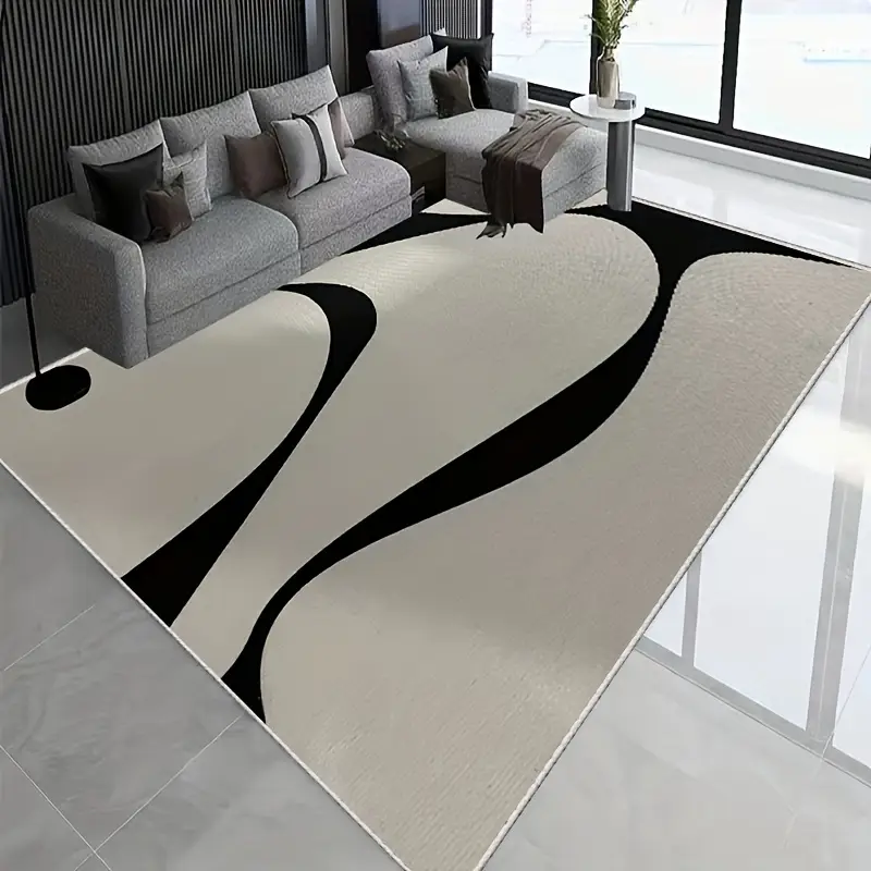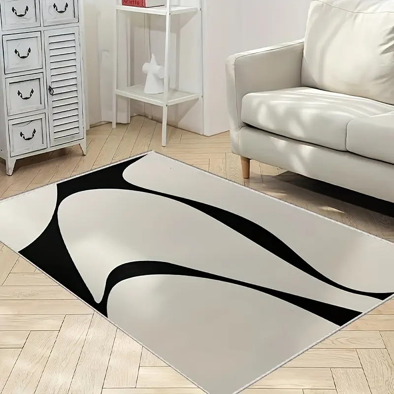 1pc, Non-Slip Velvet Floor Mat - Soft and Durable Carpet for Living Room, Bedroom, Game Room, and Dormitory - Machine Washable and Stylish Black and White Design - 47.24x62.99in/62.99x90.55in/78.74x118.11in