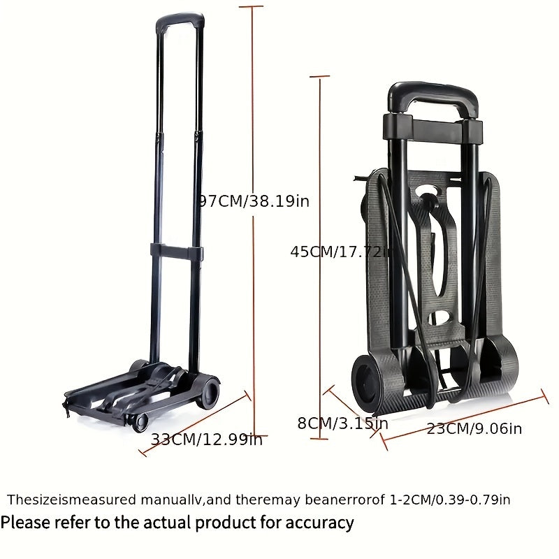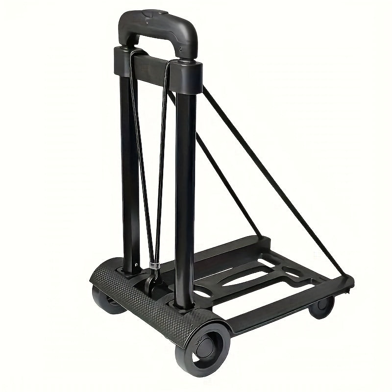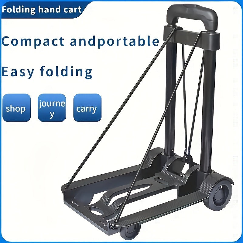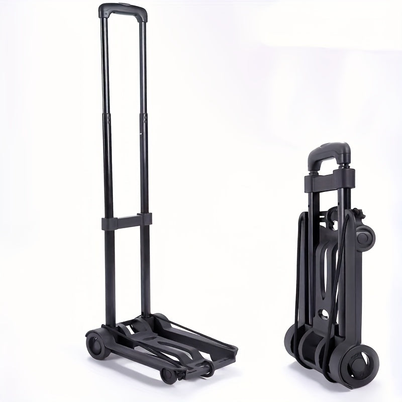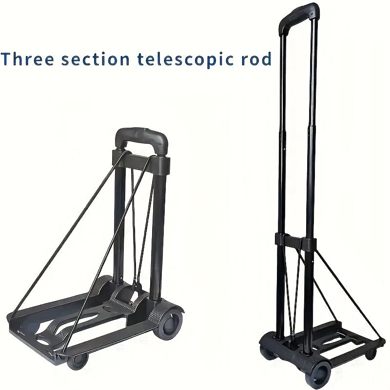 1pc Portable Cart, Portable Trolley, Iron Tube 4 Wheels Small Trolley, Folding Telescopic Pull Cargo Carriage, Convenient Trolley For Buying Food, Moving Freight, Moving Luggage, Camping Travel Essentials