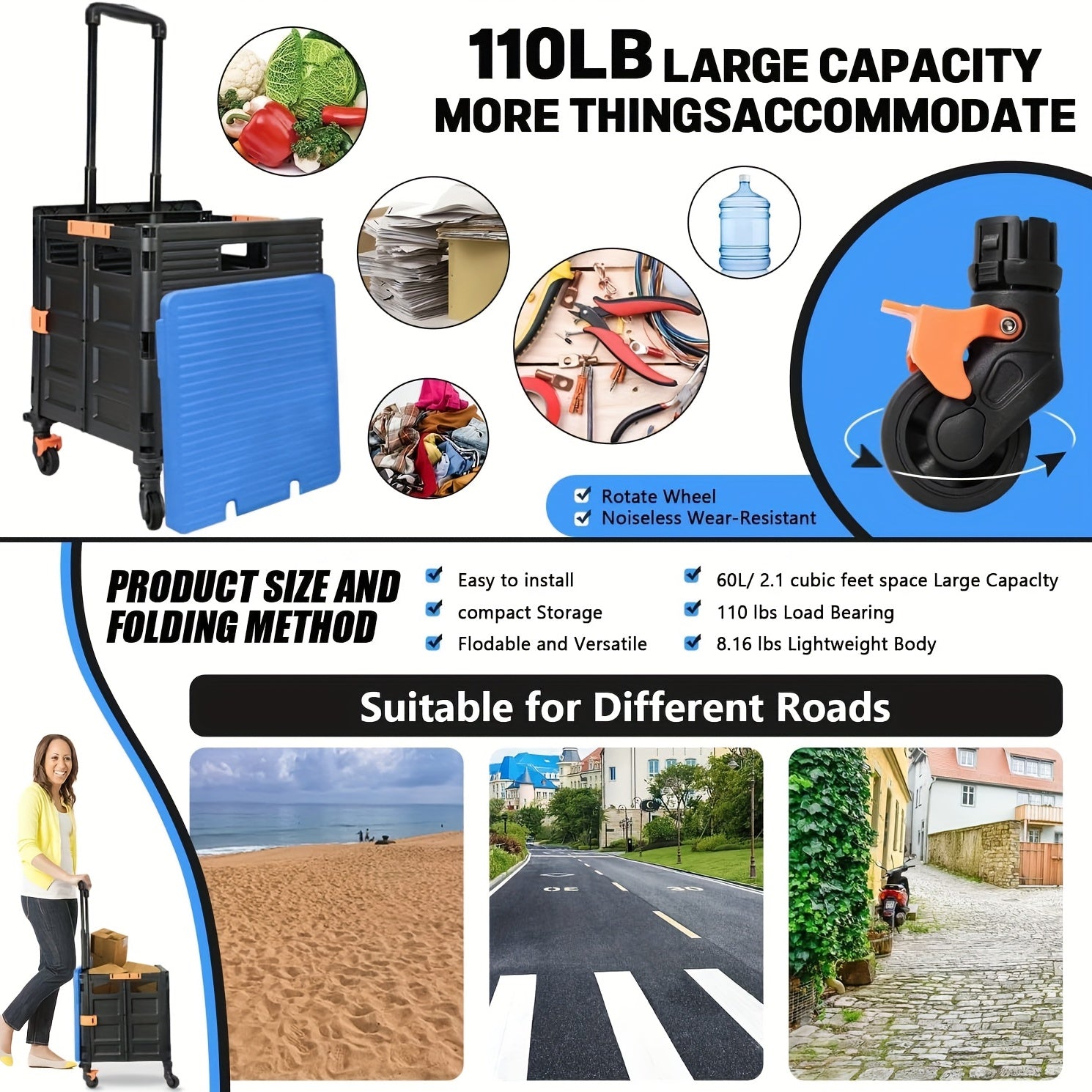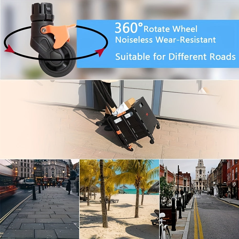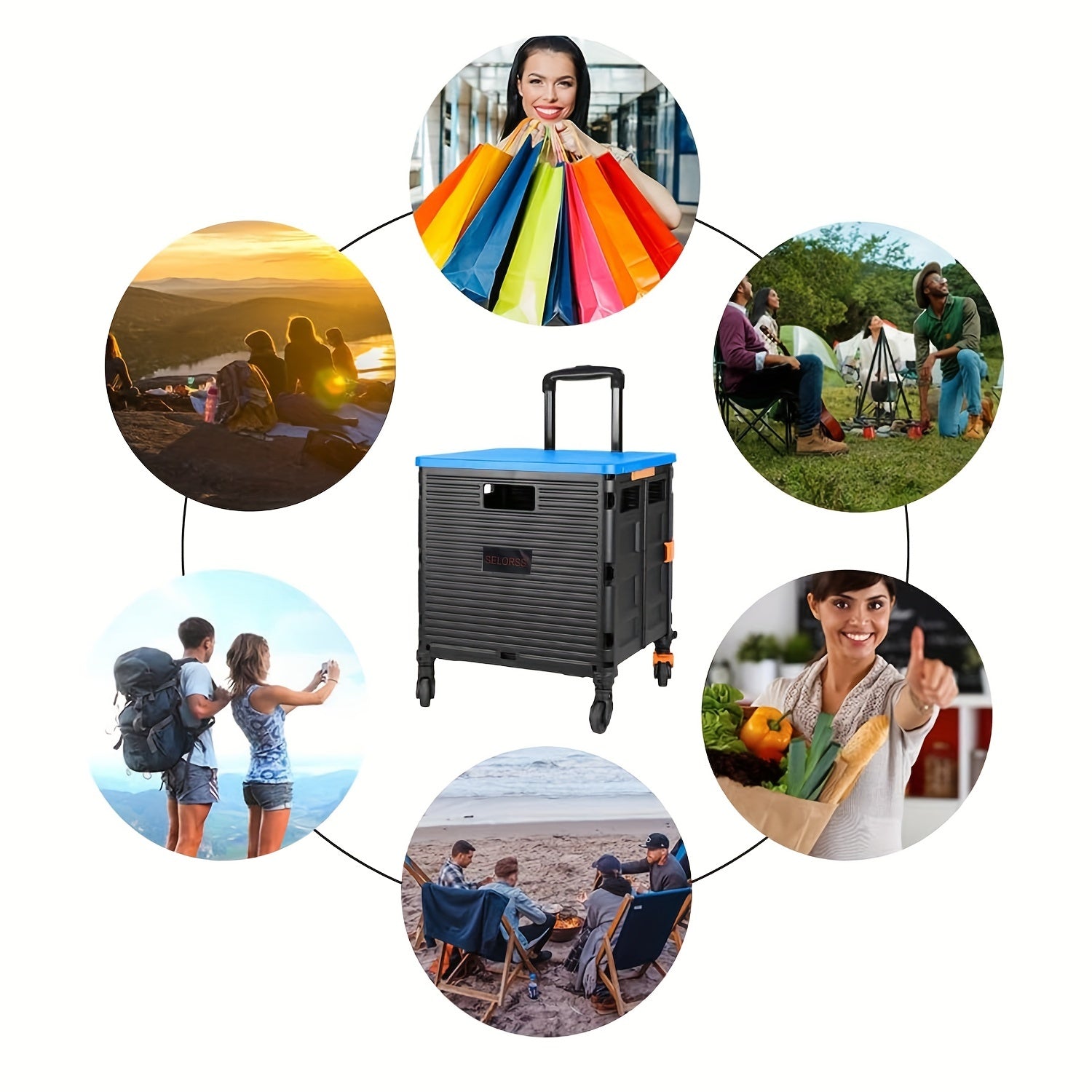 1pc Super Capacity Collapsible Utility Cart with Telescoping Handle and 4 Rotating Wheels - Perfect for Camping and Shopping Organization