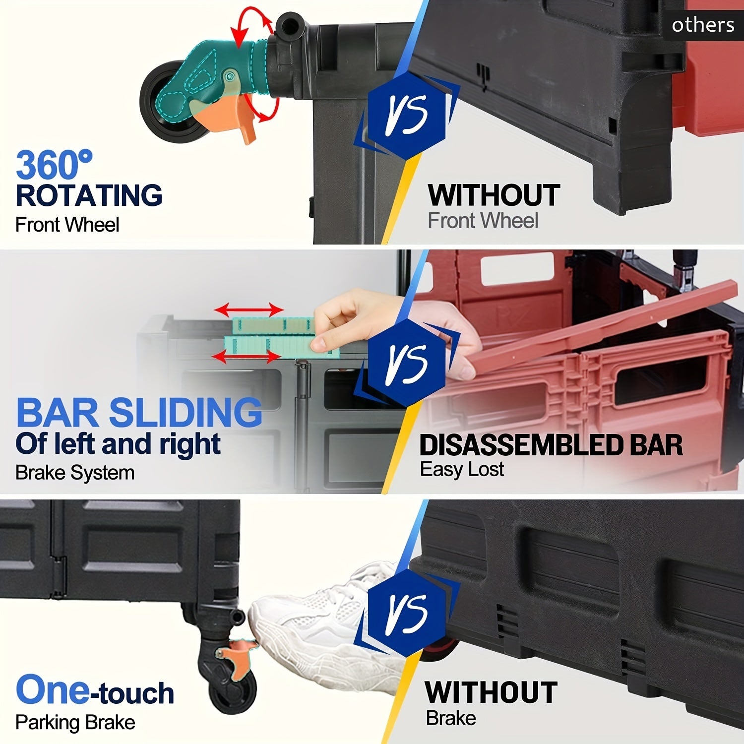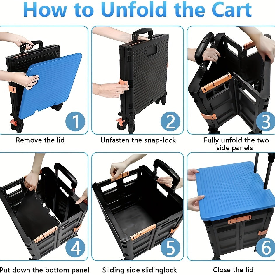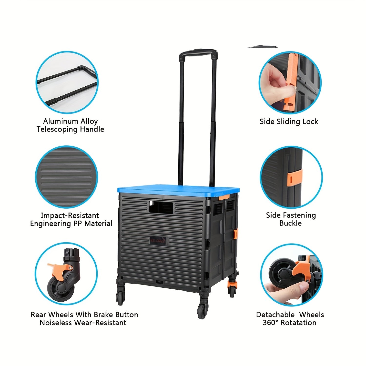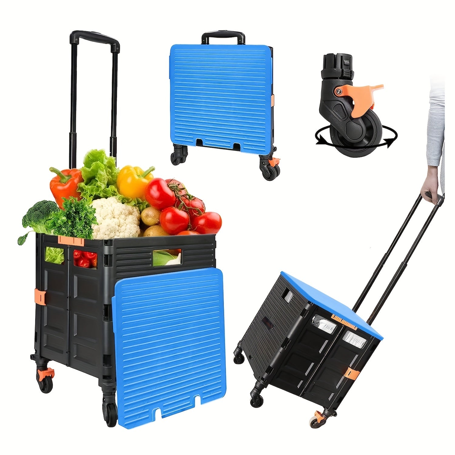 1pc Super Capacity Collapsible Utility Cart with Telescoping Handle and 4 Rotating Wheels - Perfect for Camping and Shopping Organization