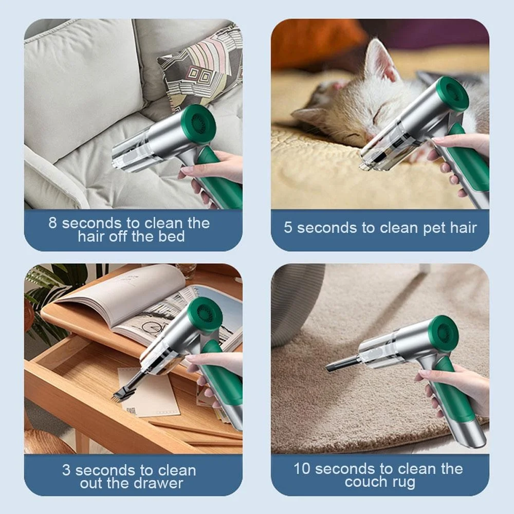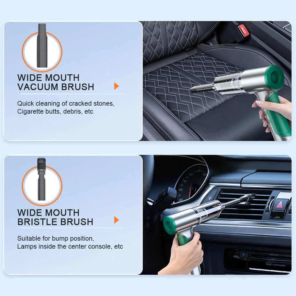 ➤ This portable vacuum cleaner not only sucking up dust, but also blowing away the dust, One end of the accessory connection