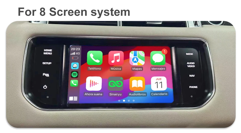 Support: On-line map, Spotify, Phone,Messages, Podcasts…