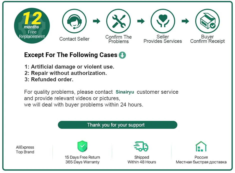 2.The valid period of replacement is 14 days from the date of receiving the item.