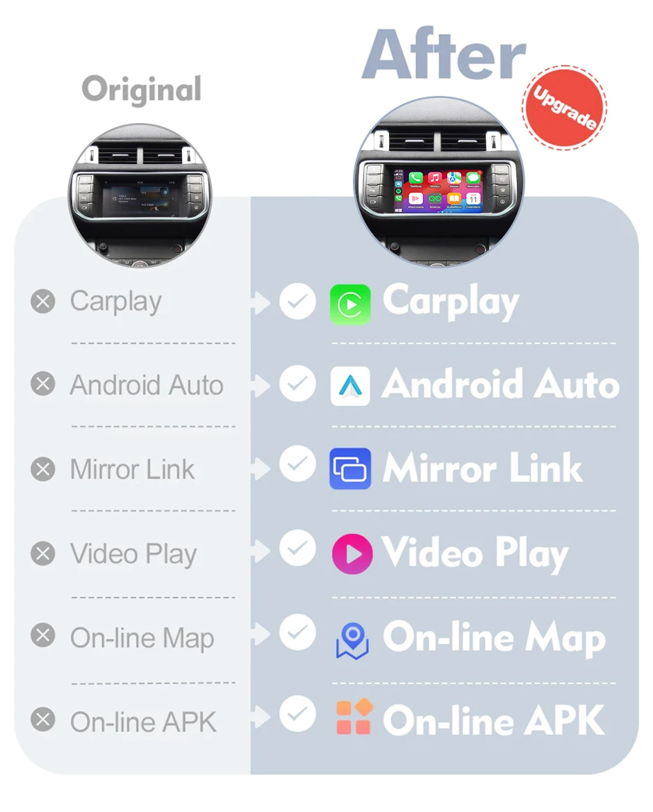 2024 Carplay Module For Land Rover/Range Rover/Evoque/Discovery 4 Jaguar/XE/XF Android Auto Car Play Adapter Box Stereo System