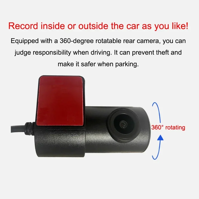 360-degree Rotatable Rear Camera Record inside or outside the car as you like!
