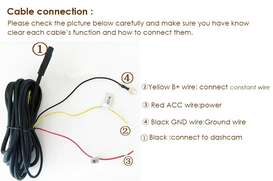The red wire is connected to ACC, the yellow wire is connected to constant electricity, the black ground is connected, You need an electric pen to measure ACC and constant electricity.