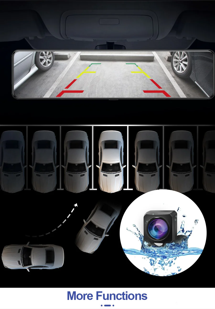 Smart rear view angle switch between driving and parking.You could see all further vehicles and objects clearly behind.you while real-time driving and it will switch the rear view camera automatically to give a closer backup image when parking.