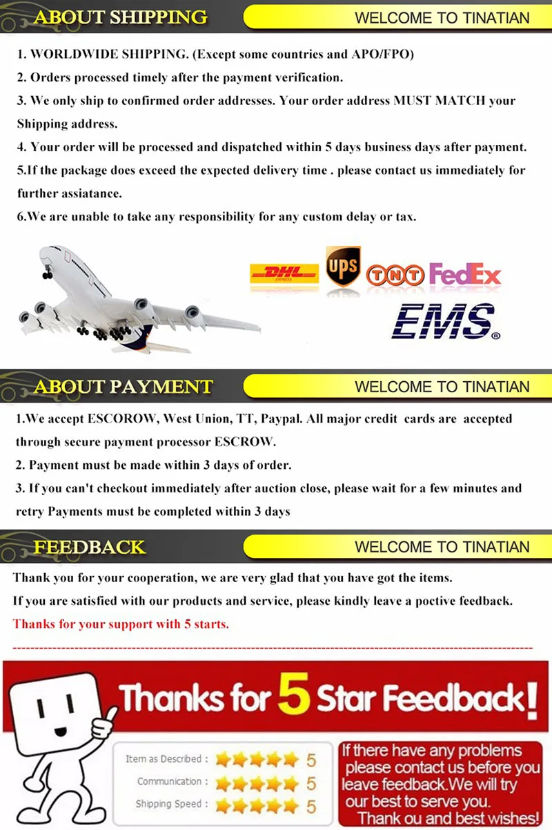 Montaggio: 1. Rimuovere tutta la polvere e grasso dalla zona di applicazione. 2. Utilizzare 3M General Purpose Cleaner e Cera di Rimozione o altri un solvente delicato, come il Bianco Spirito applicato con onu panno pulito. 3. Indirettamente di calore la copertura trim e auto carrozzeria utilizzando un asciugacapelli delle nazioni unite 30 gradi Celsius, al fine di ottenere una migliore istante legame. 4. Rimuovere esterno che copre dalla nastro per esporre lato adesivo. 5. Apply di stampaggio (con nastro applicato) per la zona desiderata del corpo vettura. 6. Buff giù difficilmente dopo l'applicazione. 7. 24 ore prima di lavare la vostra auto. Caratteristica: Facilità di installazione wihtout qualsiasi strumenti, doppio lato 3M nastro adesivo automobilistico e attaccato. Non Tramonterà mai, Mai Ruggine. Fornire eye-catching in mostra e personlise la vostra auto. Made in un impianto di ISO 9001 per garantire una consegna qualità. Di Fabbrica Rigoroso CONTROLLO di QUALITÀ di prova. Qualità Garantita, Garanzia Offerto. Uno dei migliori sul mercato. Dura Per Anni. Attenzione: Perché lo stesso modello di auto può essere in modo diverso prodotto in paese differente. Si prega di assicurarsi che la parte della vostra auto venire la nostra immagine mostra, o non si adatta, se eventuali differenze, si prega di contattare con noi prima dell'acquisto, grazie! Perché lo stesso modello di auto può essere prodotto in modo diverso in diversi paesi. In Modo Che quando lo si ottiene. Se non e appropriato o non disponibile. Si Prega di contattare noi. Ci dati l'immagine Fateci sapere colomba c' e errore. Vi forniremo servizio soddisfacente. Grazie per il vostro sostegno e comprensione In contatto con noi: Sarà molto apprezzato se mi lasciate le risposte positive con quattro 5-Valutazione di Vendita Dettagliata (DSR) A noi che basiamo sulla vostra soddisfazione con il nostri prodotto e servizio. E 'solo di prendere fews secondi. Ma significa molto per me. E noi faremo lo stesso per voi entro 24 ore o più presto. Se meno di un positivo le risposte sta per essere lasciato noi saremmo grati la possibilità di essere ascoltato e corretto tutto ciò che problemi che sono distribuzione a voi.Per favore non ci lasciare qualsiasi risposte neutre/negative, in contatto con noi per risolvere tutti i problemi circa la transazione. Io sono un venditore sincero, io sono sempre qui per risolvere qualsiasi problema per voi.