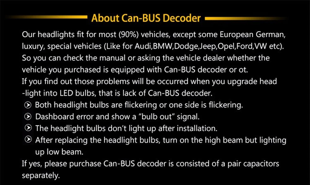 Attention: Only replace 35W Xenon bulb with Original HID ballast, not for Halogen bulb. If without original ballast, please contact us for help before buying.