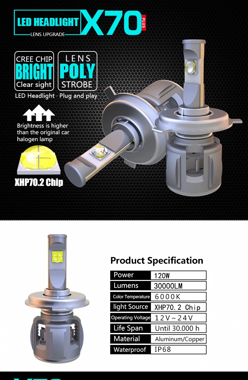 XHP70.2 Chip LED HEADLIGHT being recognized the brightest LED HEADLIGHT in the car lamp market