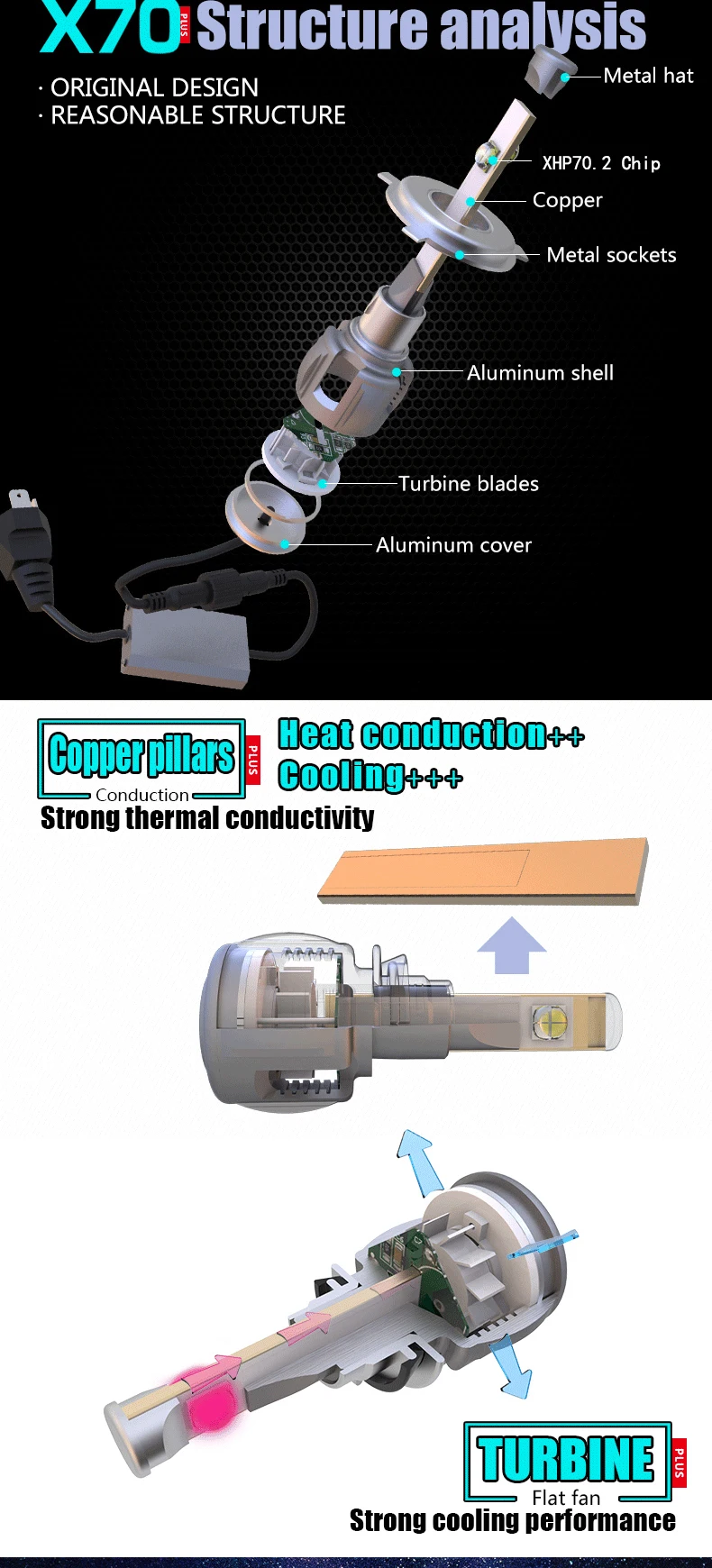 - 2 x USA XHP70.2 Chips LED