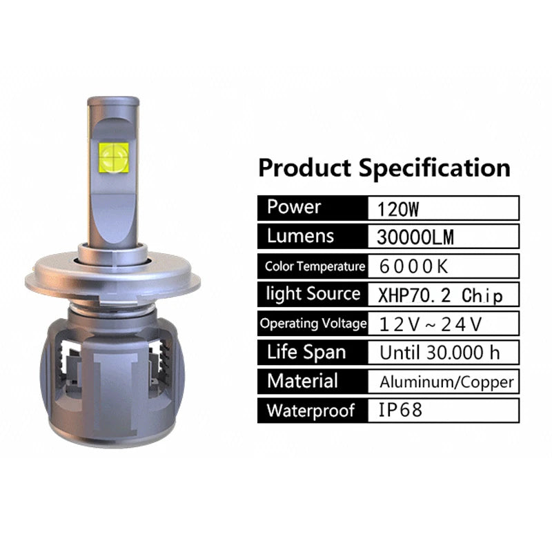 - 30000lm total output (per bulb), 300% brighter than halogen
