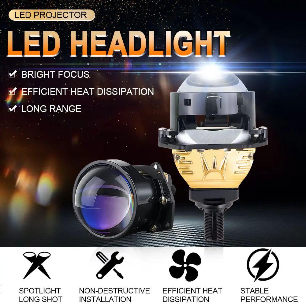 3Inch Bi LED Projector Lenses Headlights H7/H4/9005/9006 LED Car Light For Motorcycle Mini Car Lenses Bulb Retrofit 90W