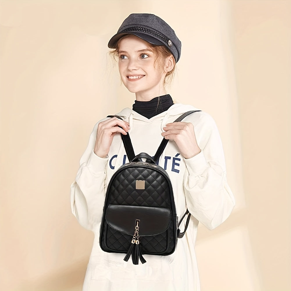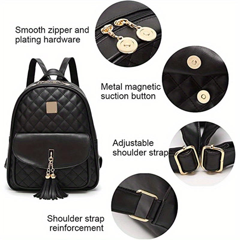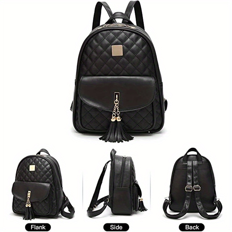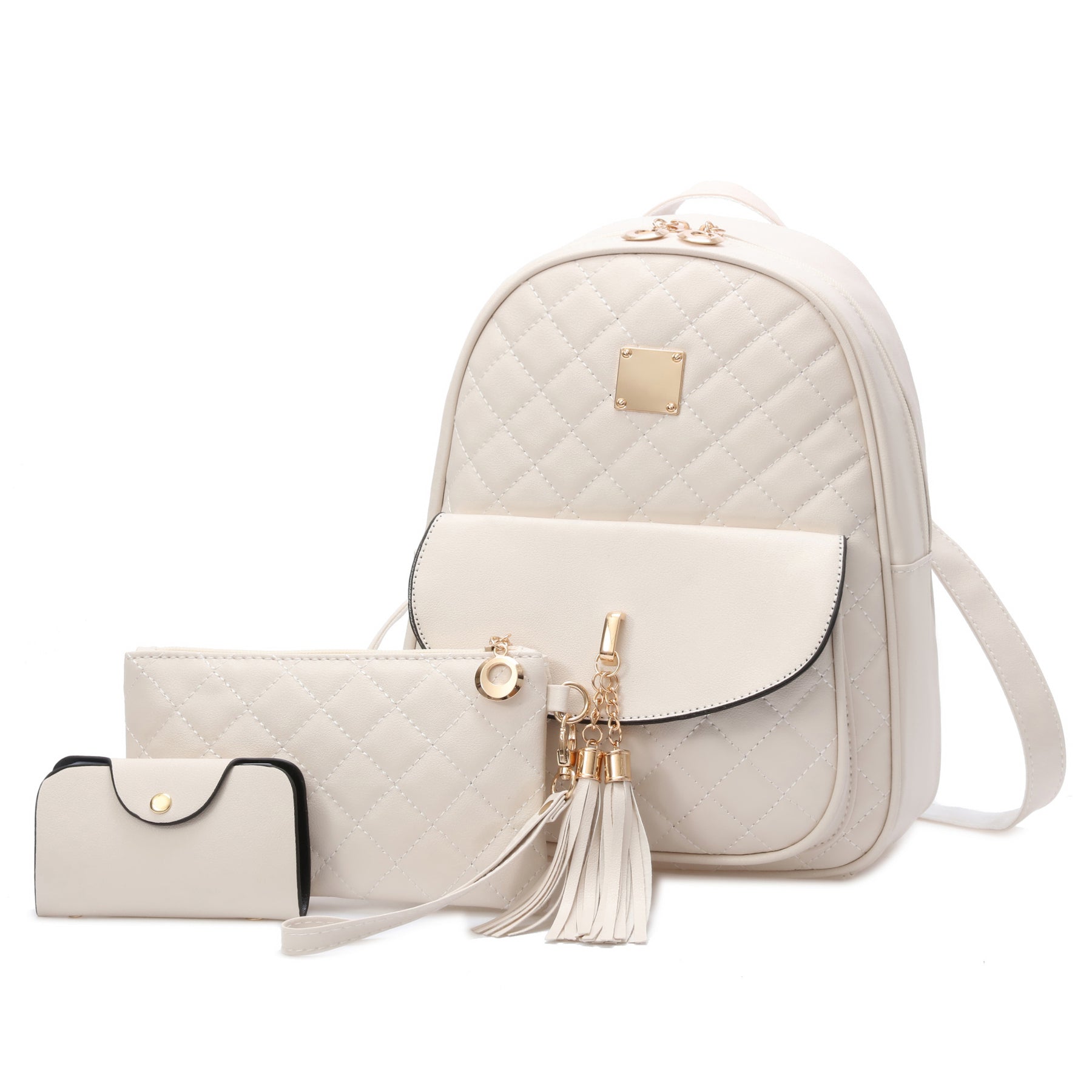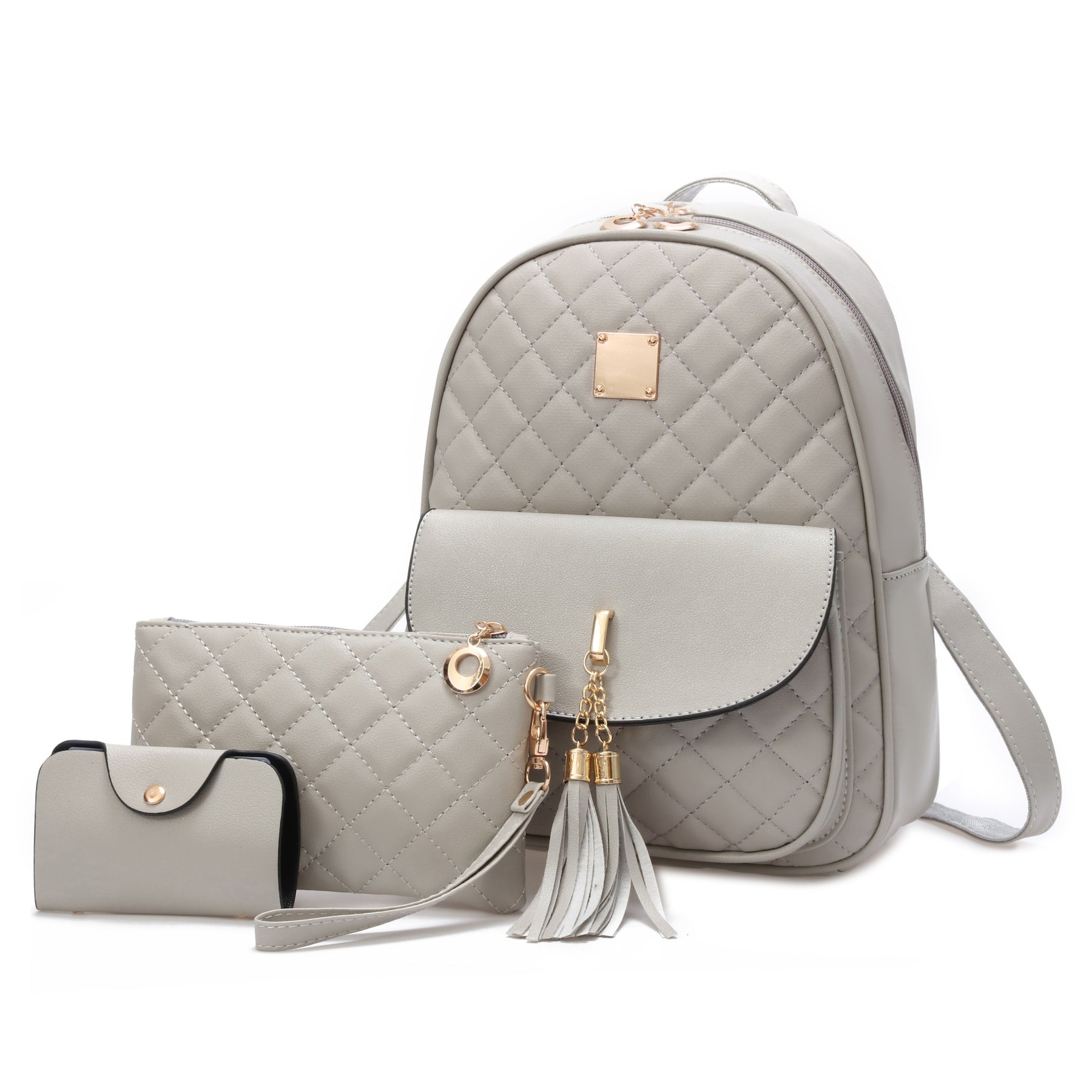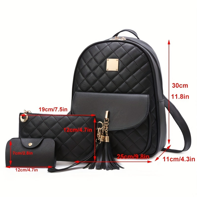 3Pcs Argyle Quilted Backpack Set, Women's PU Leather School Bag With Clutch Purse & Card Holder